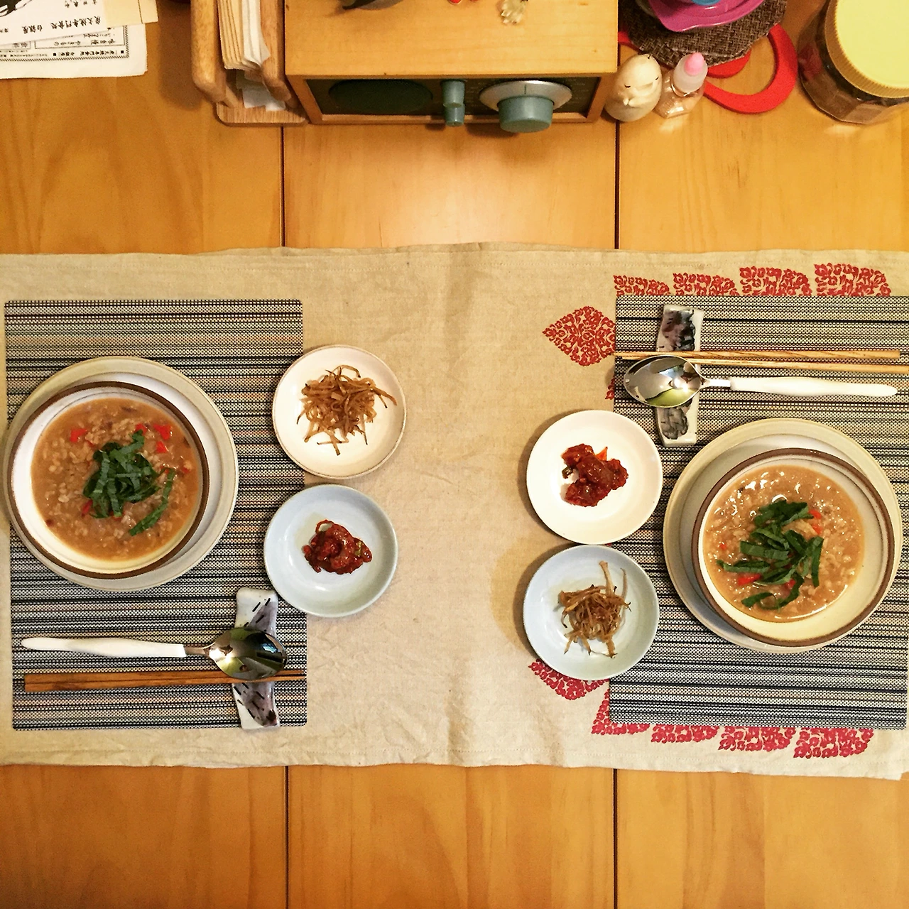 요즘은 아침에 죽을 먹습니다. 속이 편하고 참 좋습니다. 특히 된장을 넣고 끓인 죽이 제일 좋아요.