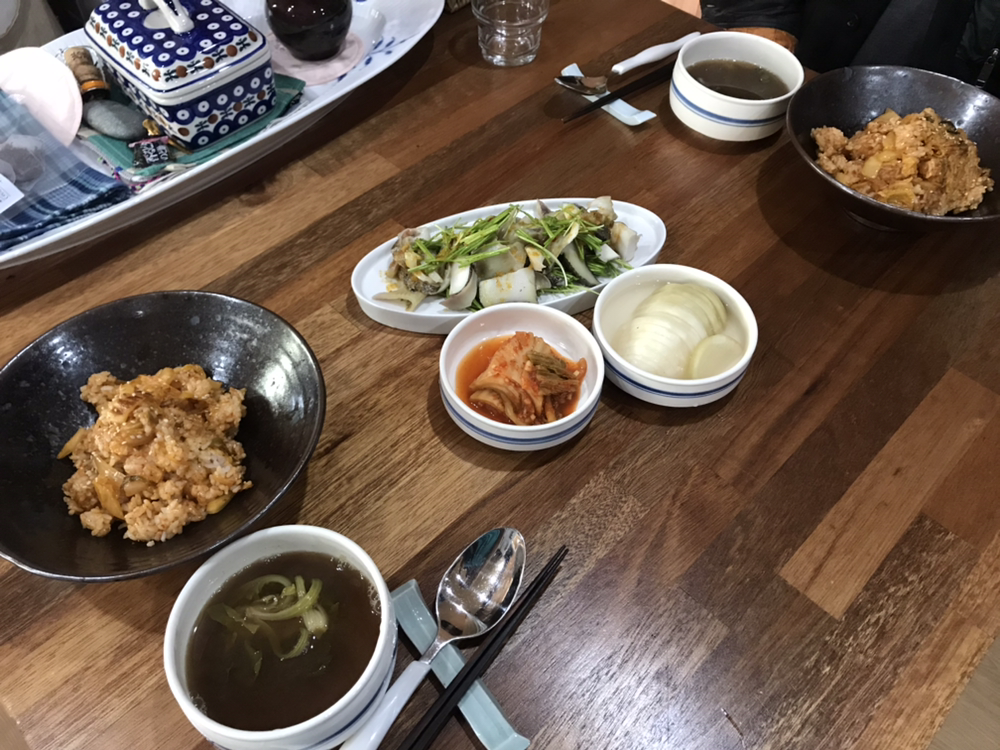 밥을 할때 김치를 얹어하는 김치밥과 김치를 볶다 찬밥을 넣어 볶는 김치볶음밥이다. 난이도로 치면 김치밥이 김치볶음밥보다 훨씬 쉽다. 하하하하