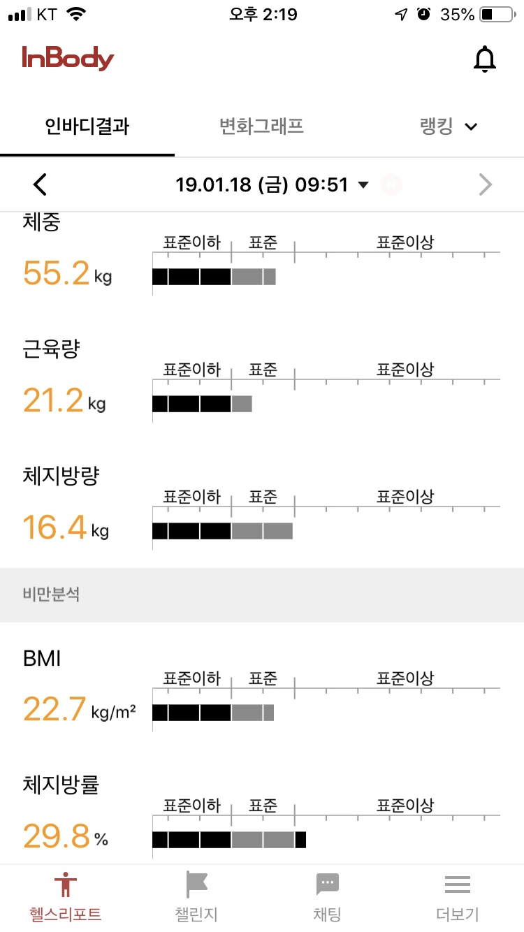 위의 인바디 기록은 이후 나의 간헐적 단식 결과를 비교하기 위함이다.