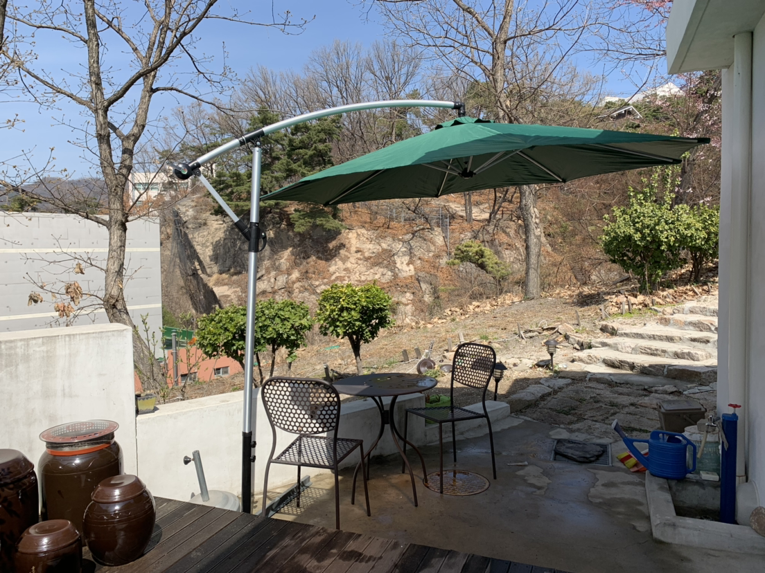 파라솔이 있는 마당은 휴가지 같아서 좋다.