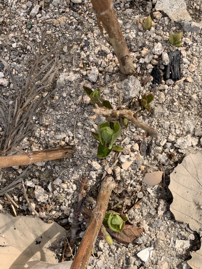 수국은 죽은 줄 알았는데 순이 돋고 있다.