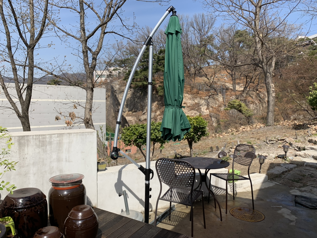 새로 구매한 파라솔은 우리 마당에 비해 조금 컸다.