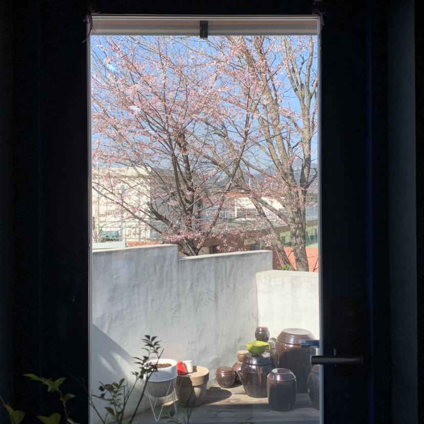 이맘때 현관 밖으로, 그리고 침실 창밖으로 보이는 벚꽃은 한 폭의 그림처럼 아름답다.