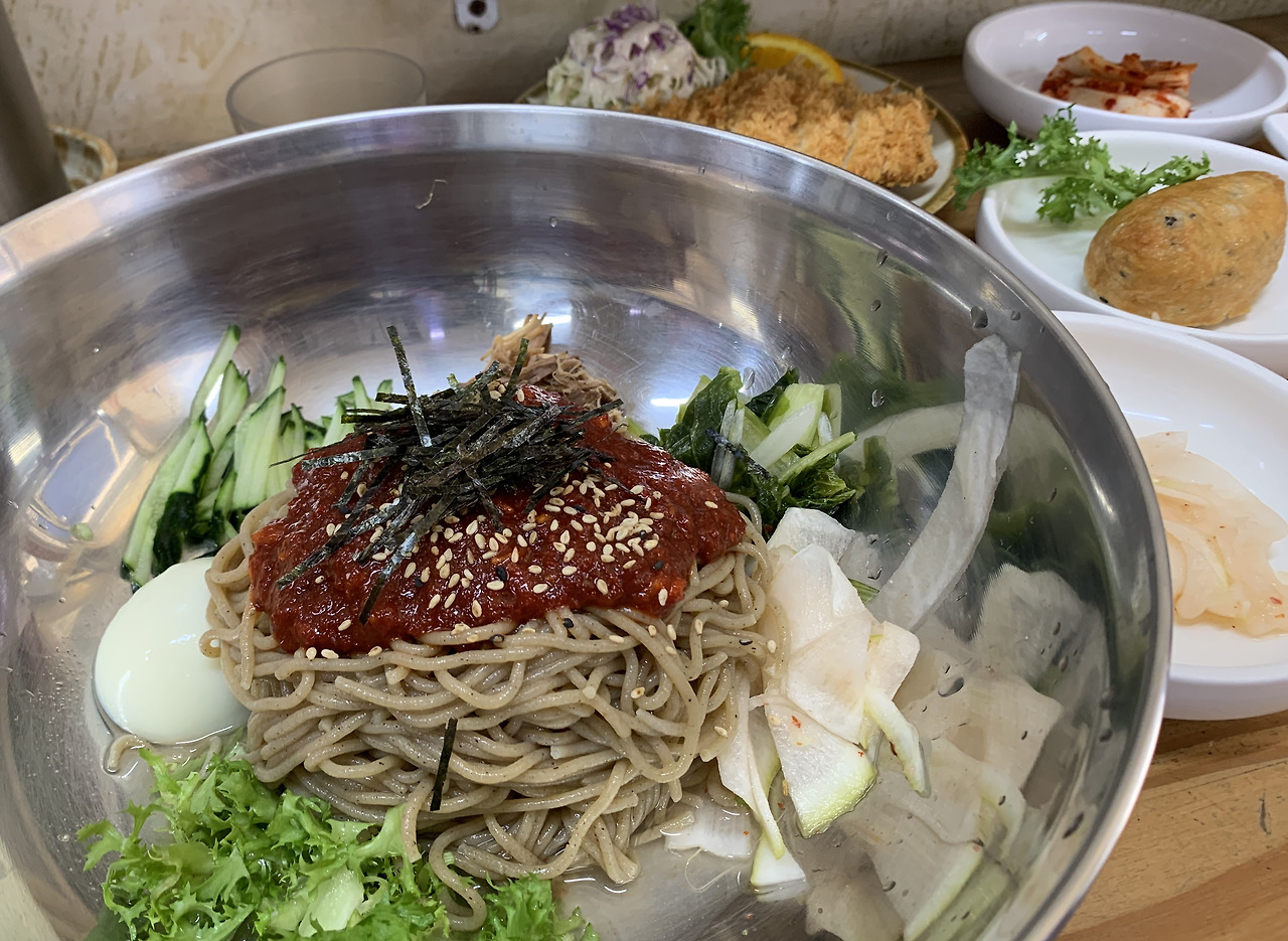 비빔 양념 맛도 너무 달지 않고 적절했다. 내 뒤로 들어온 사람도 순메밀을 주문했는데 오늘 유독 순메밀 주문이 많아 준비된 양이 다 떨어졌단다. 아이고, 하마터면 순메밀면도 못 먹을 뻔했다. 정말 다행이다.
