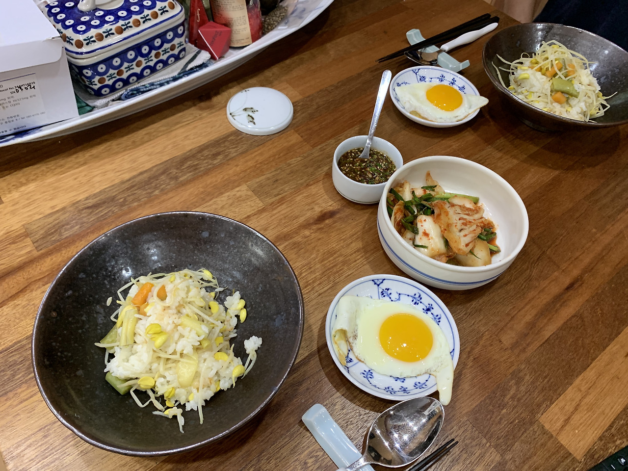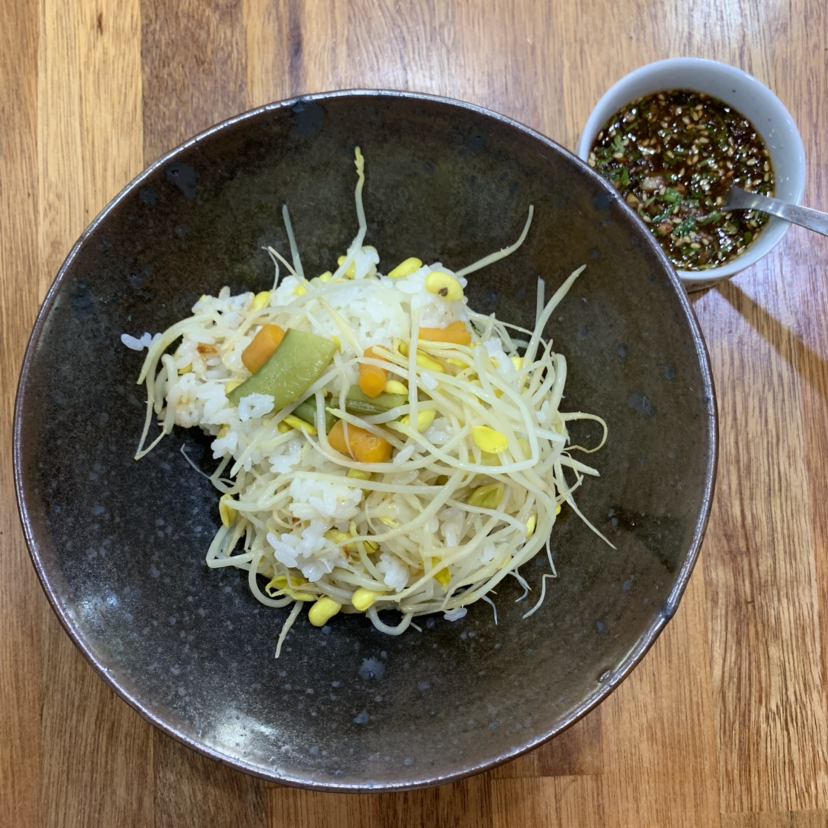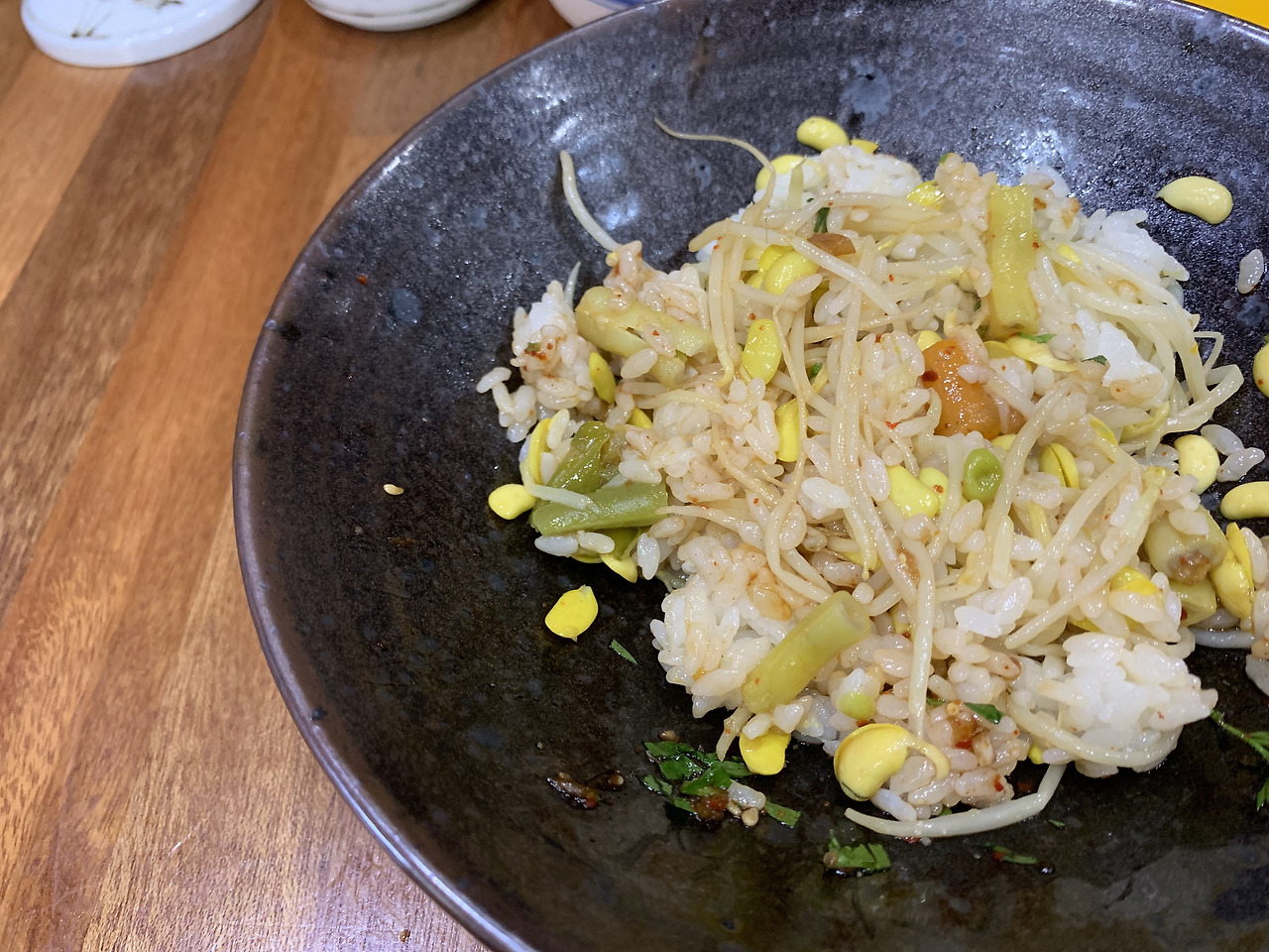 콩나물만 얹어 먹으면 심심하고 그냥 그런데 양념장을 얹어 비비면 숨어있던 맛이 나타나 고소한 맛이 나는 게 이게 밥인가 고기인가 싶다.