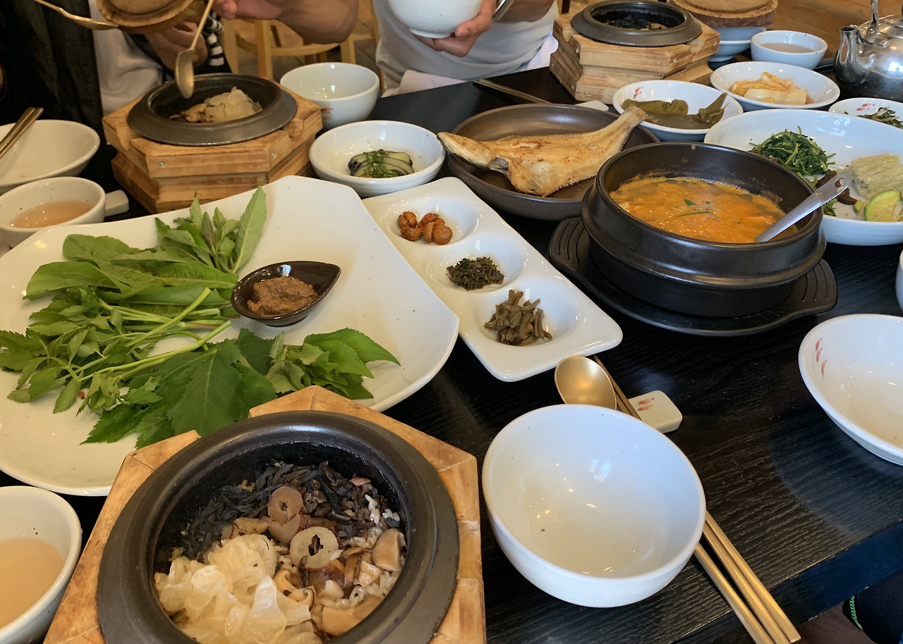 점심은 조금 멀리 이동해서 먹었다. 예약제로 운영되는 건강한 한식을 파는 <달래촌>였다. 주물 솥에 지은 버섯밥과 정갈한 나물 반찬 등이 아주 좋았다.