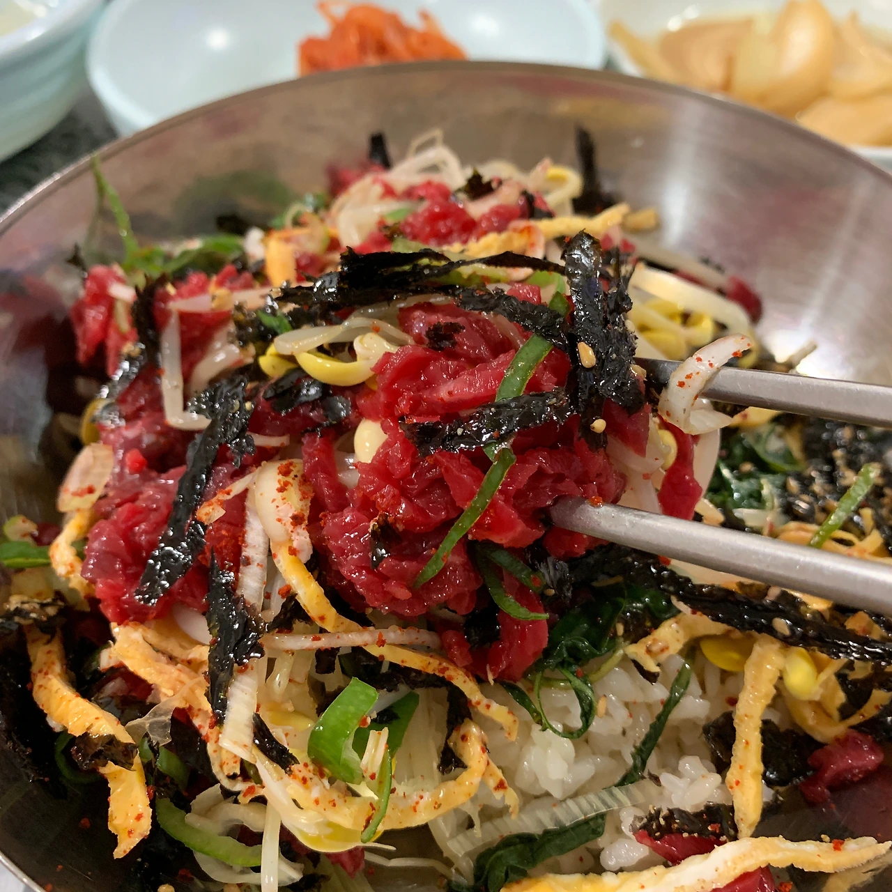 고추장이 정말 좋았기 때문이다. 짠맛과 단맛의 균형이 좋았다. 보통 비빔밥의 고추장을 생각하는 사람이라면 덜 달게 느껴질 것이다. 하지만 이 정도라야 한다. 그래야 고기 맛을 해치지 않는다. 더 달면 고기맛은 느낄 수 없고 고추장 맛만 기억에 남는 비빔밥이 된다.