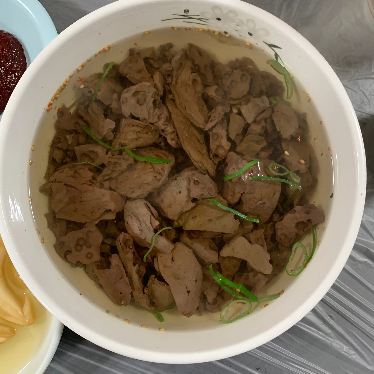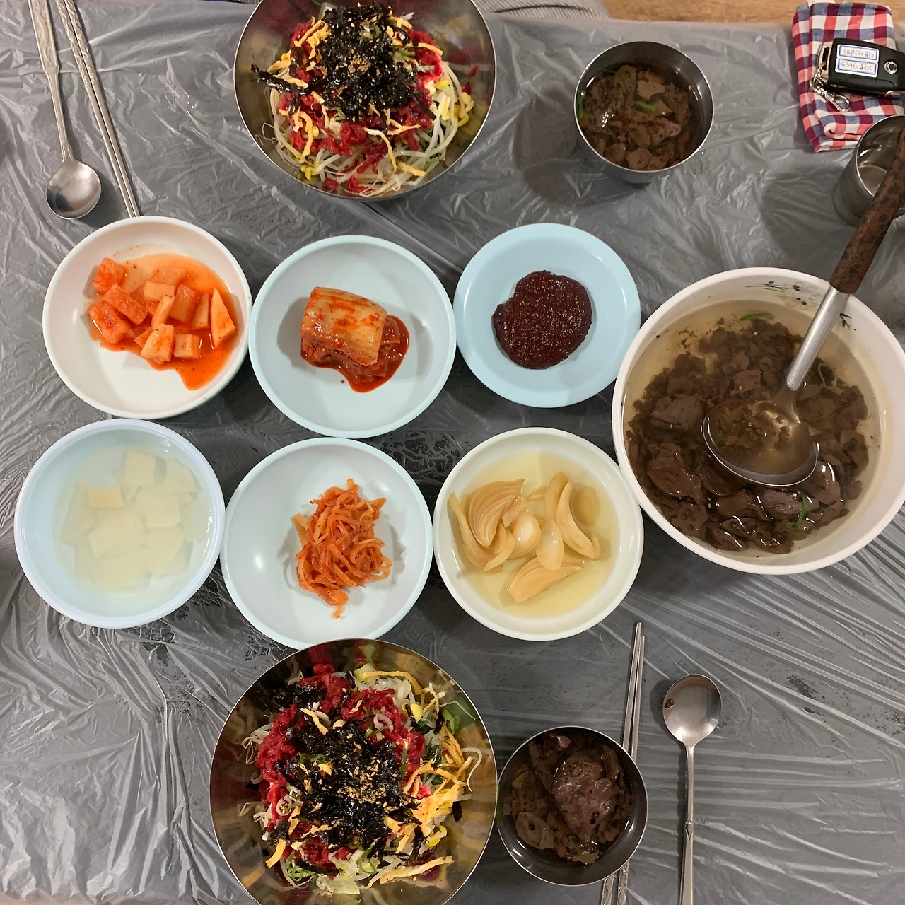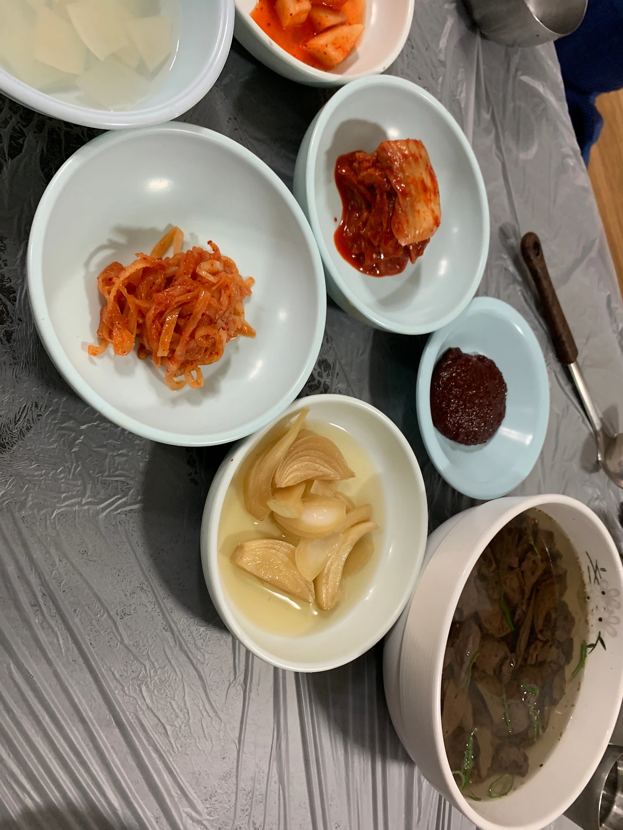 밥을 먹기 전에 큰 대접에 맑은 선지국이 나왔다. 지금까지 나는 이렇게 맑은 선지국을 본 적이 없다. 맑은 선지국이라...자신감이다. 한 숟가락 떠서 먹는다. 국물은 시원하고 선지는 고소하다.
