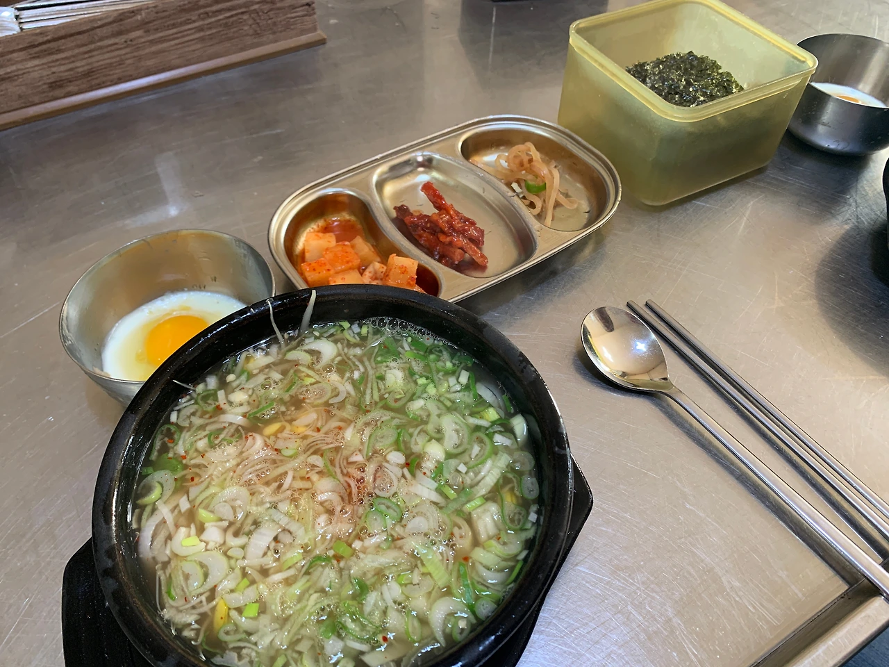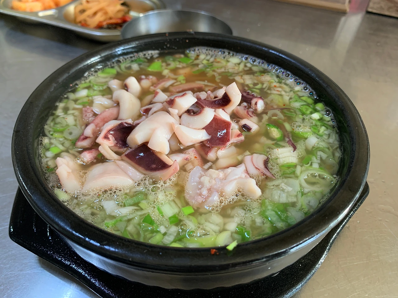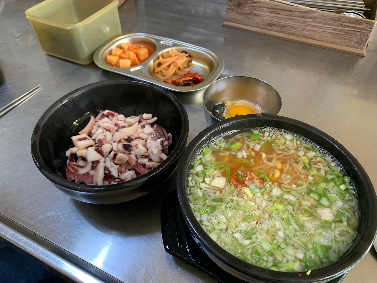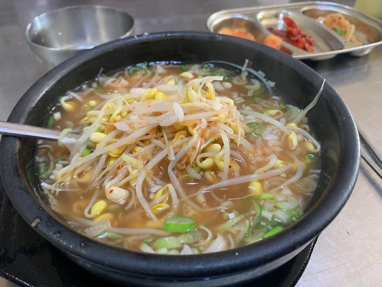 첫 방문시 오징어 추가를 알지 못해 다시 갔다. 그리고 당당히 오징어 하나를 추가해 주문했다, 둘이 와서 반마리를 추가하는 분도 계셨고 셋이 와서 한마리를 추가하는 분도 계셨다. 데친 오징어를 넣는 것이기에 맛에 변화를 주진 않지만 확실히 씹는 맛이 좋았다. 아삭한 콩나물과 부드러운 오징어가 짝을 이뤄 국밥을 더 오래 맛볼 수 있게했다.