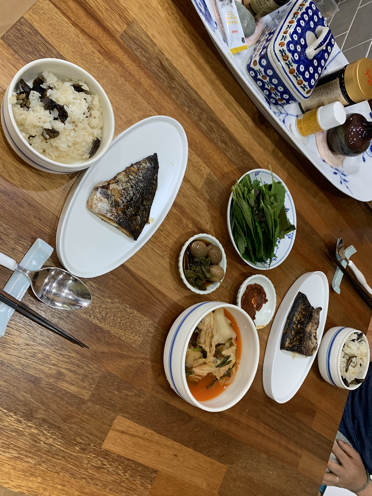 매 끼 손에 갈 반찬 한 가지로 상을 차린다. 그것은 채소 무침일 때도 있고 생선 구이일 때도 있고 고기구이일 때도 있다. 여기에 김치를 더하면 우리 집 밥상은 완성된다.