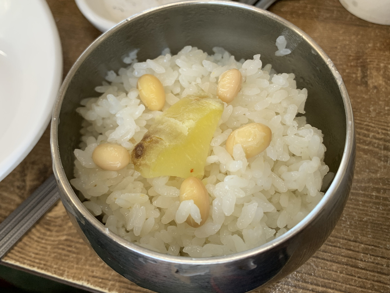 그러나 아직 수저를 놓기엔 이르다. 이 집의 백미는 밥이었다. 주문을 받으면 밥을 짓는 모양이었다. 밥과 같이 누룽지가 나왔는데 적당히 누른 것이 속을 부드럽게 채웠다. 이쁘게 담긴 하얀 쌀 밥에 콩과 고구마가 예쁘게 얹어진 것이 절로 웃음 짓게 했다.