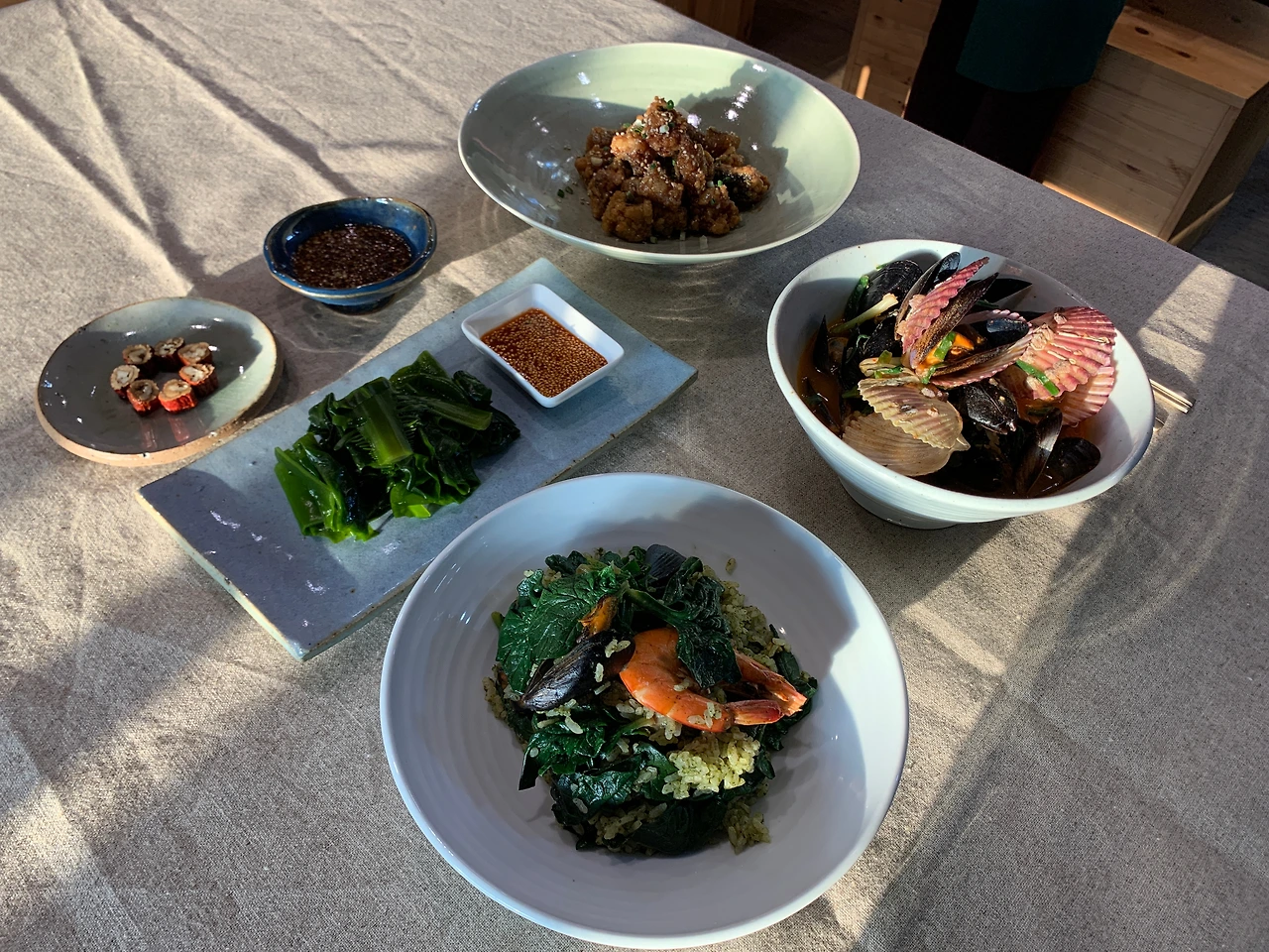 이런 계절의 특성을 알며 첫 시간엔 바다에서 나는 따듯한 기운이 나는 홍합과 성질이 시원한 시금치로 밥을 지었다. 특히 겨울 몸속의 냉기를 제거하고 뱃속에 뭉친 것을 풀어주는 효능이 있는 홍합으로는 고추장탕을 끓였다. 또한 단백질 공급원으로도 좋고 해독에도 좋은 황태를 두 번 튀겨 달콤한 양념을 묻혀 황태강정을 만들고 물미역과 초고추장으로 서둘러 봄의 맛을 더했다. 마무리는 호두를 품은 대추 일명 ‘호품조(고은정 선생님이 직접 지은 이름이다)’로 고소하고 단맛을 즐기며 겨울을 보낸다.