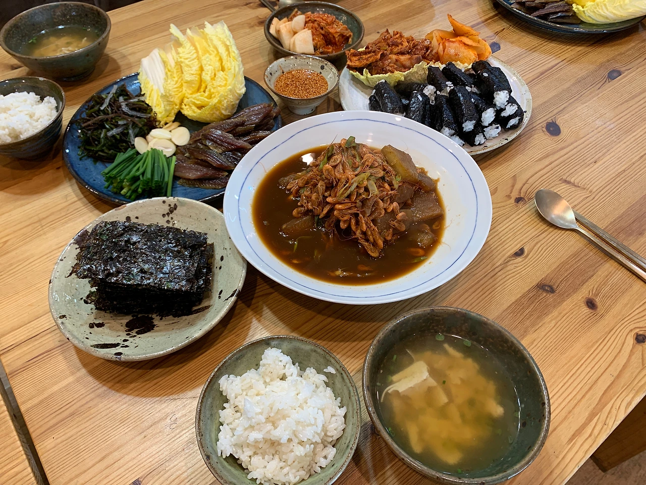 이처럼 몸에 약이 되는 제철의 음식을 배우는 것이 이 수업의 으뜸 이유라면 선생님들께서 차려주신 밥을 먹은 일은 또 다른 즐거움이다. 수업이 1박 2일로 진행되다 보니 선생님들은 피곤을 무릅쓰고 늘 정성스럽게 아침을 준비해 주신다. 이 수업이 기다려지는 이유이기도 하다. 사진은 수업 이외에 선생님께서 차려주신 밥상이다.
