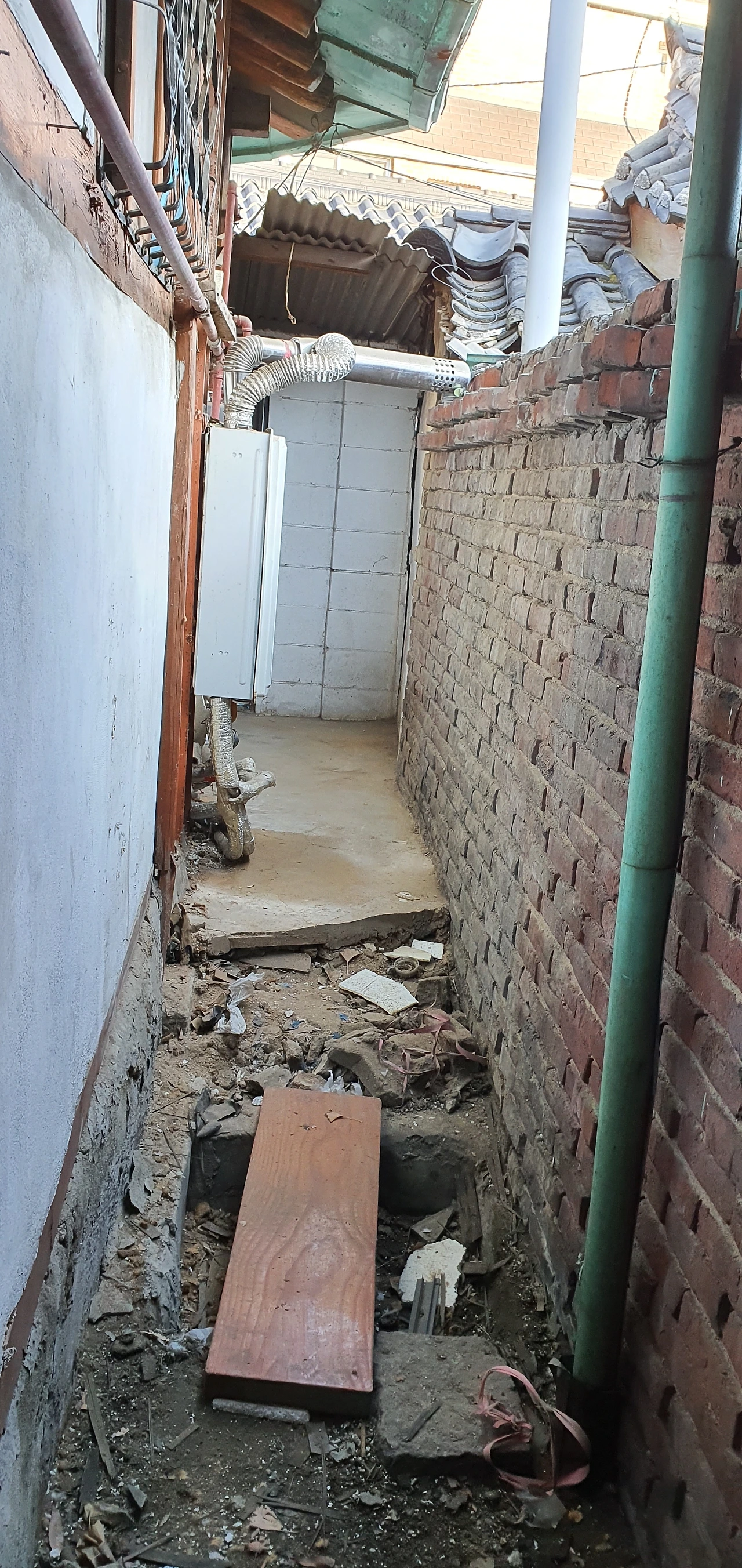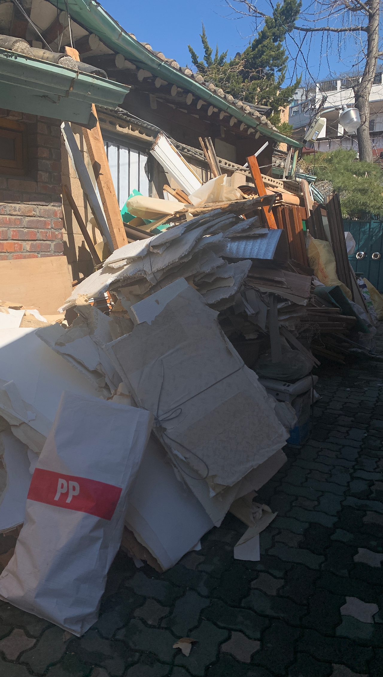 오전에 현장에 가보니 골목 가득 철거로 인해 생긴 폐기물이 쌓여있었다.