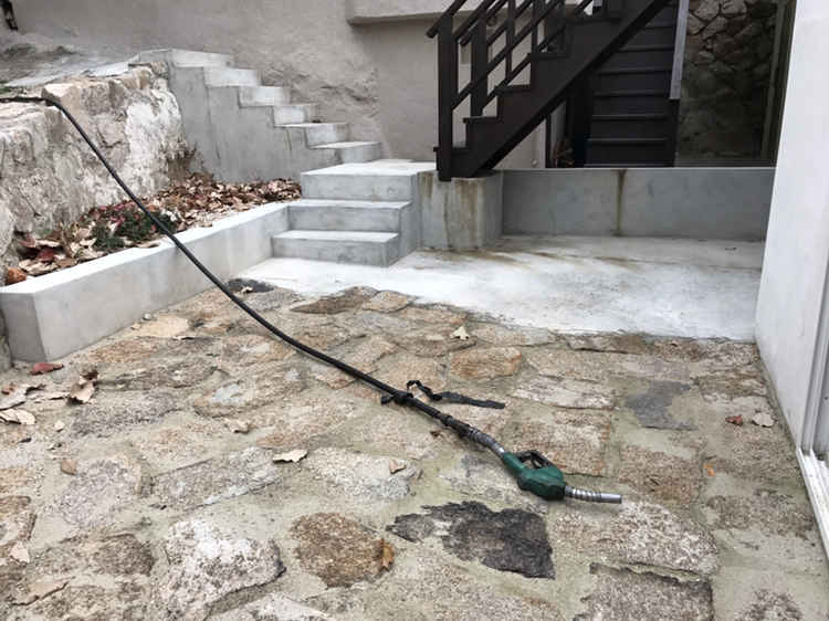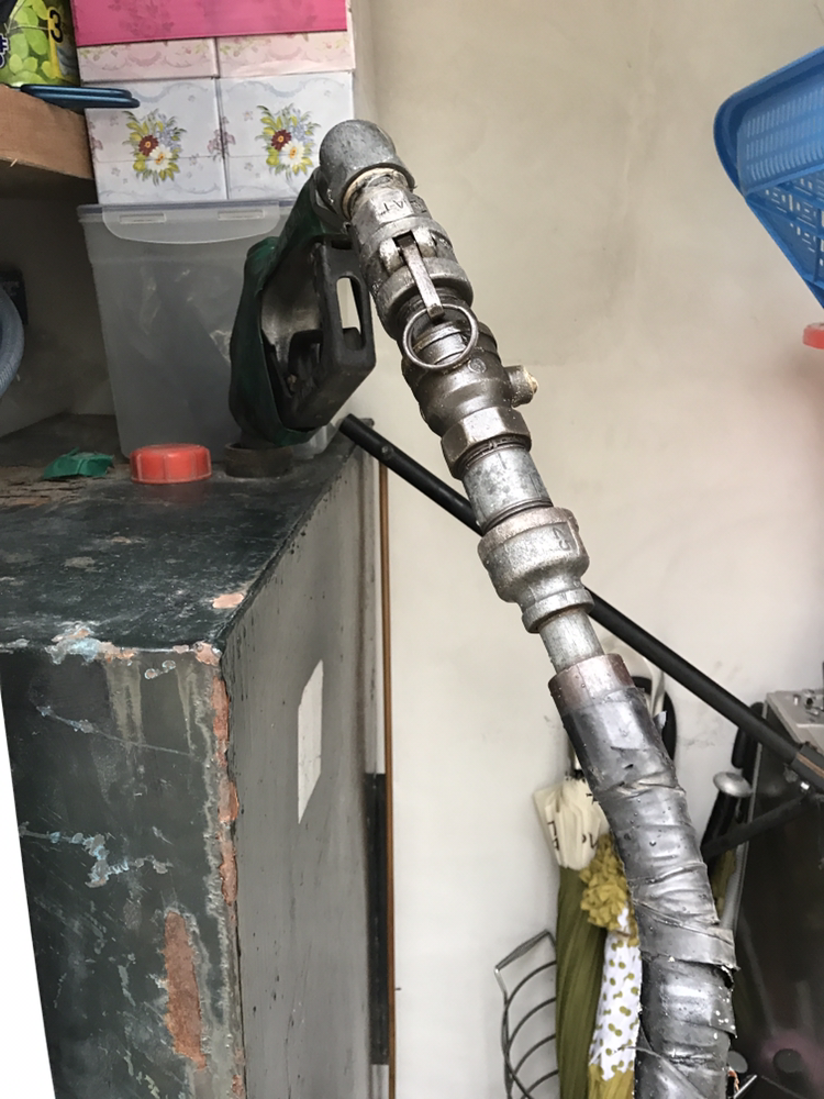 기름집에서 100미터 호스를 가져와 기름을넣어주었습니다.