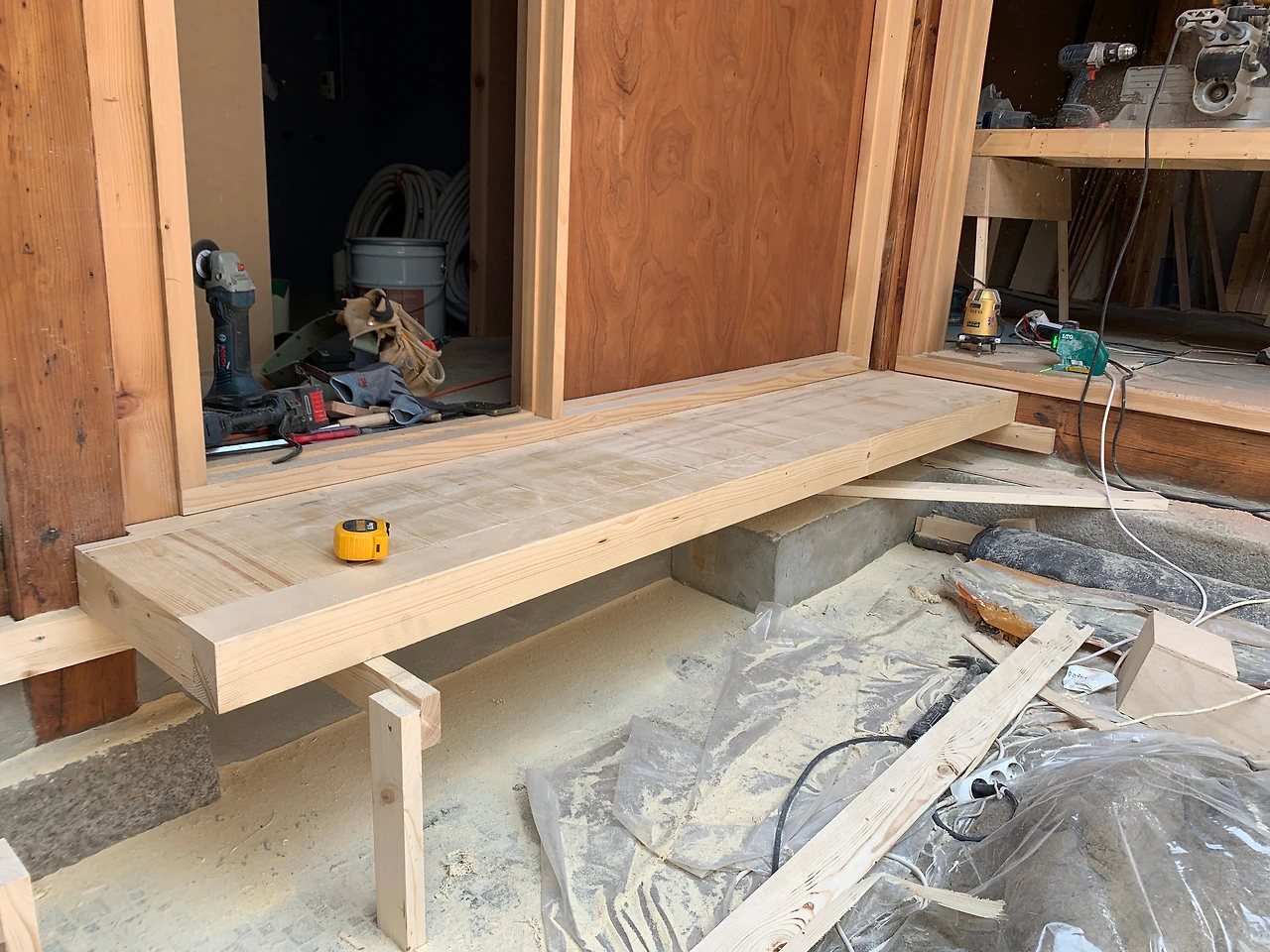 툇마루도 거의 완성되었다. 이제 얹기만 하면 된다.