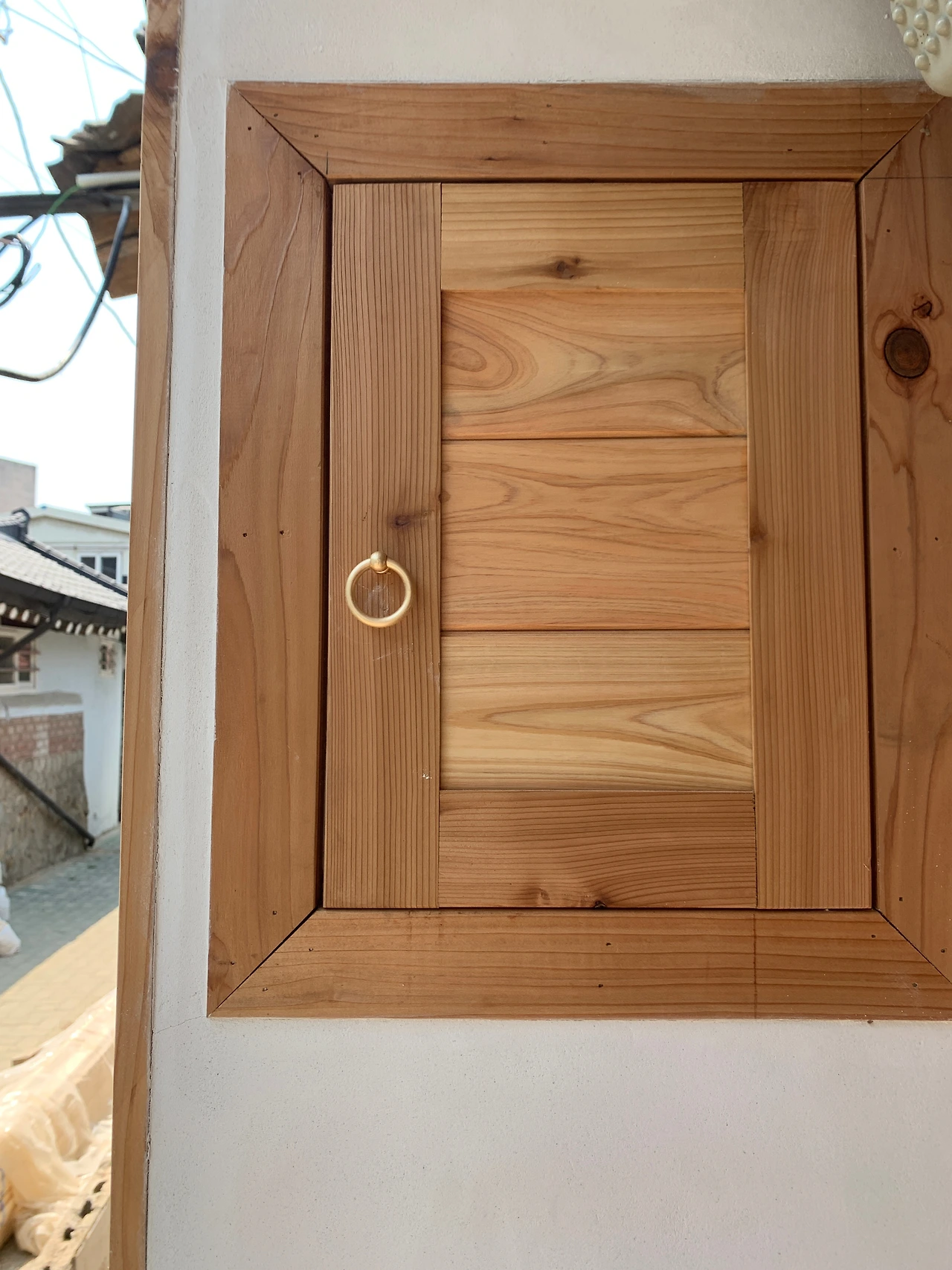 대문 밖 전기계량기에도 이쁜 집이 생기고 게스트룸의 보일러도 집을 갖게 되었다.