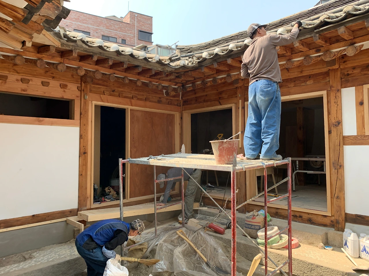 한옥대수선 31일 차_중간 회식과 마무리되는 중인 미장