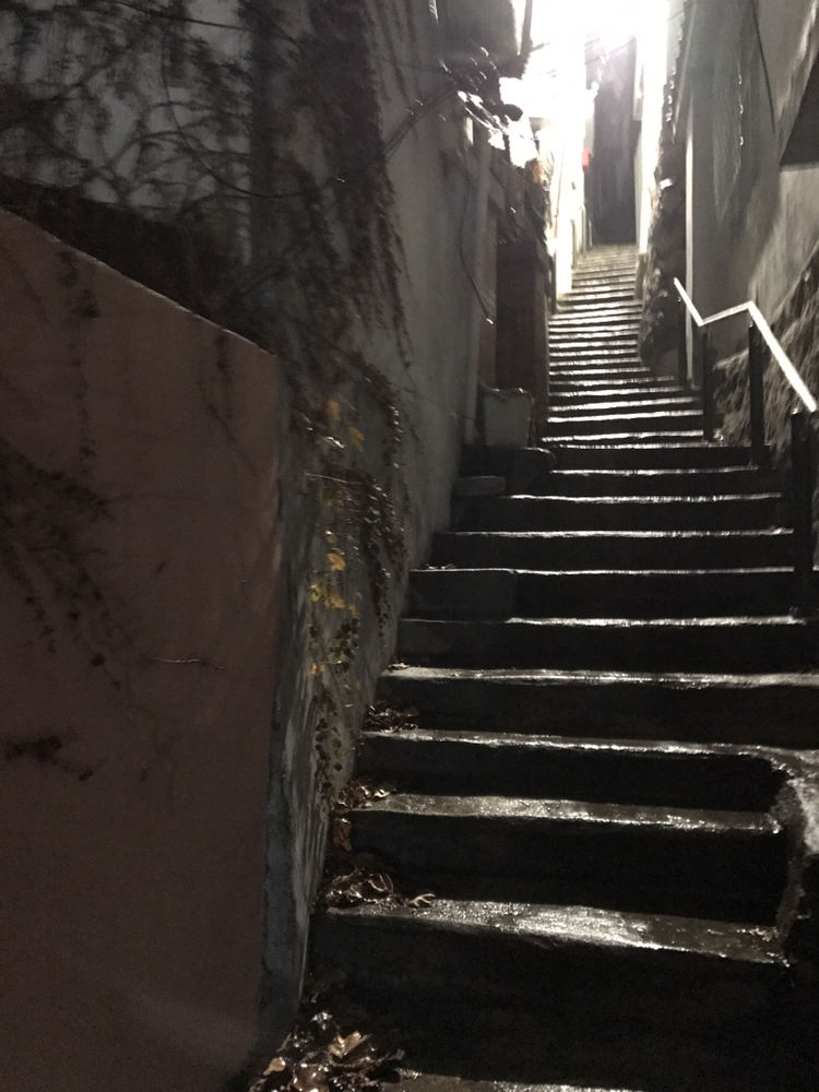 큰 길에서 한참 언덕길을 오르고 다시 계단 60개를 올라가야 한다.