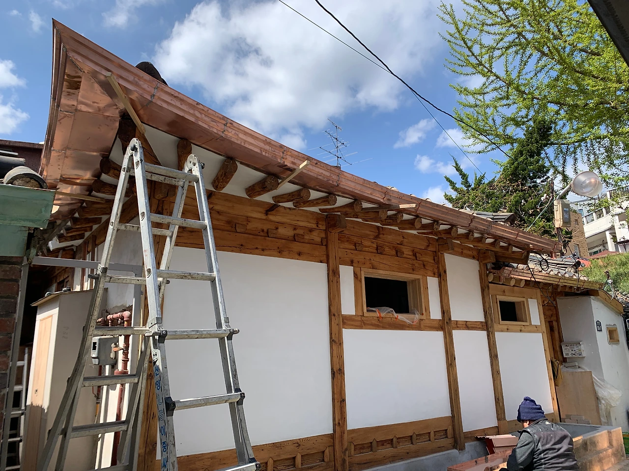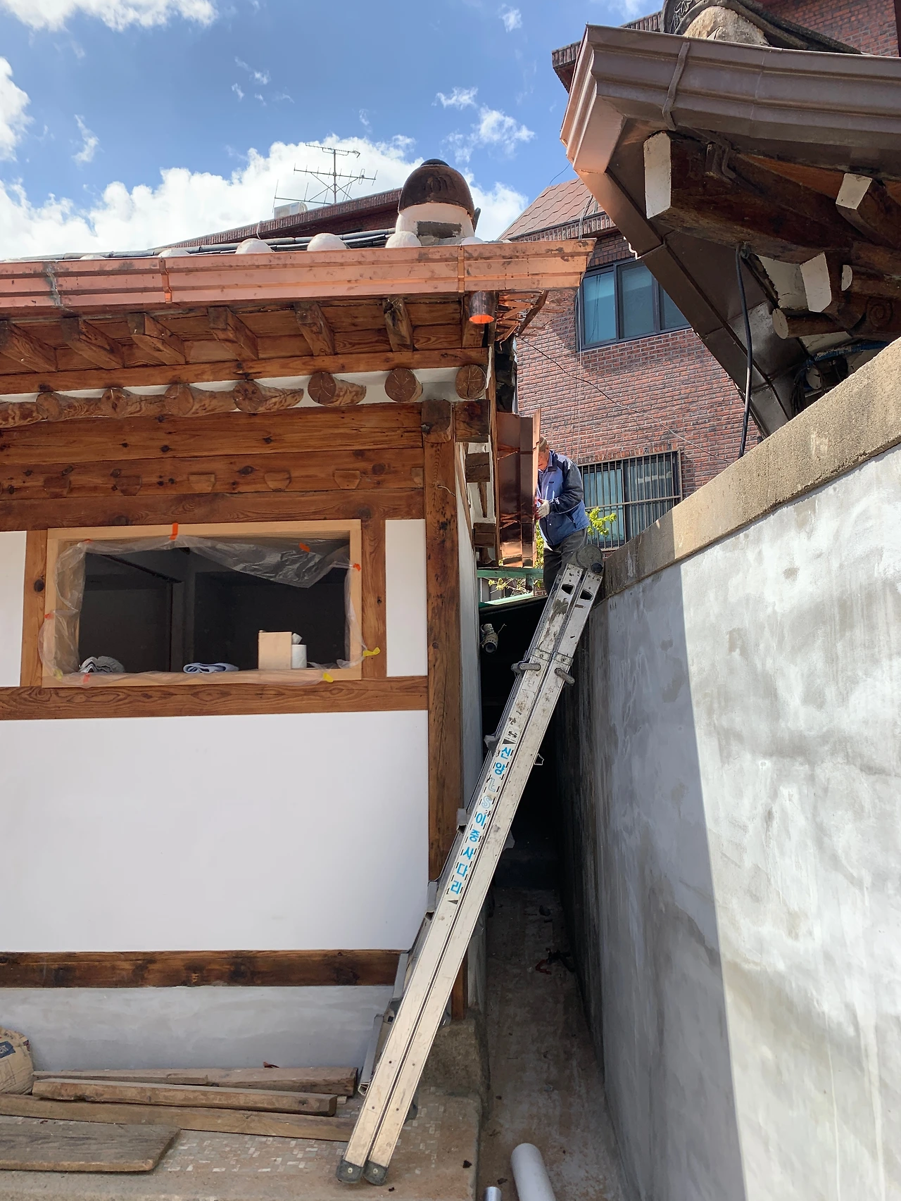 한옥대수선 36일 차_물받이 공사와 도색을 위한 기초 작업