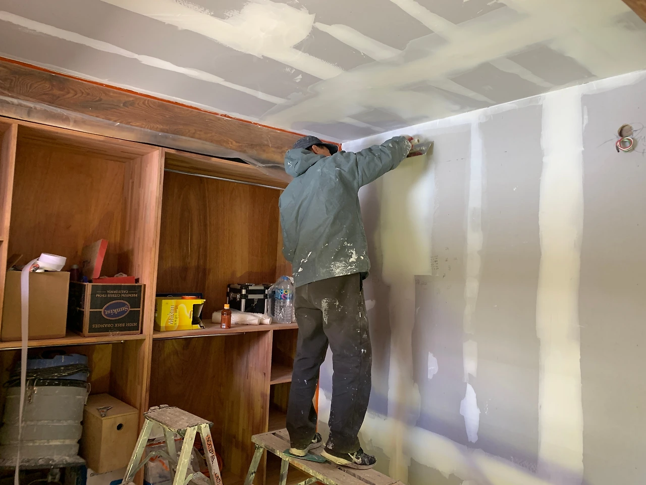 칠 작업이 진행되는 동안엔 목공 작업을 할 수 없다. 먼지와 칠은 상극이다. 대신 임 목수님은 새벽에 현장을 점검하고 있다고 하셨다.