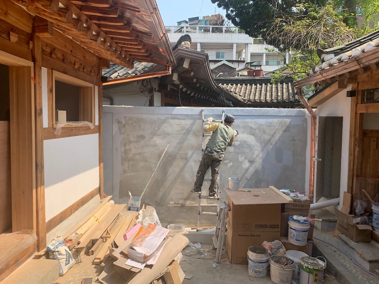 좁은 골목 안에서 작업을 하니 이웃에 끼치는 폐가 말도 못 하게 많다. 소음, 먼지를 견뎌주시는 이웃께 감사할 따름이다.