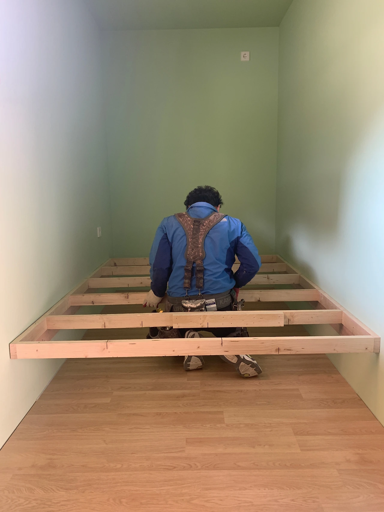 김정국 목수님은 게스트룸의 침대를 짜고 계셨다. 침대 아래는 수납공간으로 쓸 예정이다.