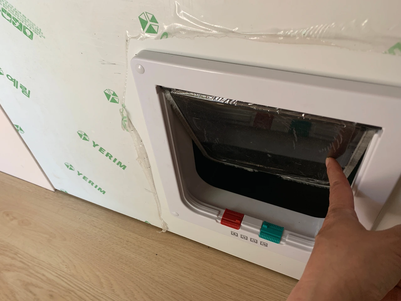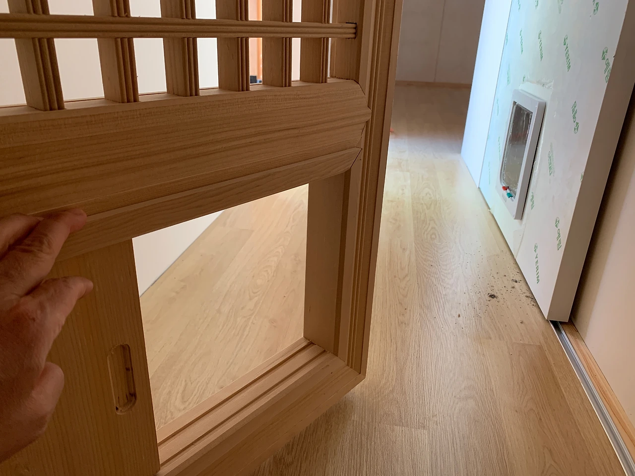 우리 집 고양이 순자를 위한 문도 두 곳에 만들었다. 순자 화장실은 욕실에 둔다. 그래서 화장실 문 아래에 순자를 위한 문을 달았다. 순자가 잘 사용해주길 바란다