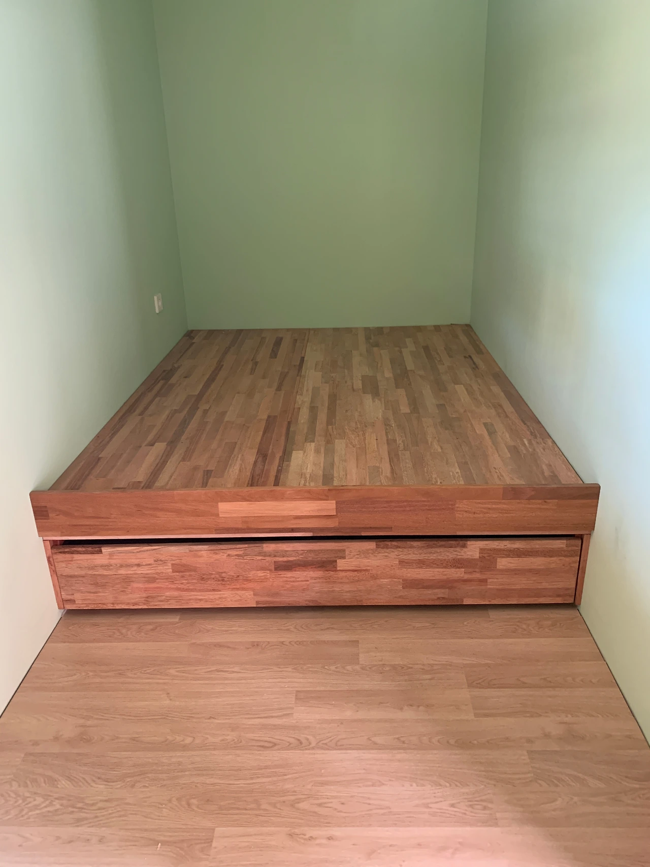 게스트룸은 김정국 목수님이 담당했다. 수납까지 해결한 평상형 침대가 마음에 들었다. 침대엔 토퍼를 올리고 사용할 것이다.