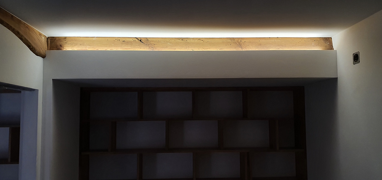 주방의 펜던트, 침실의 낮은 조도의 조명, 작업실의 밝은 조명 등 대체로 간접의 형식으로 진행했다.