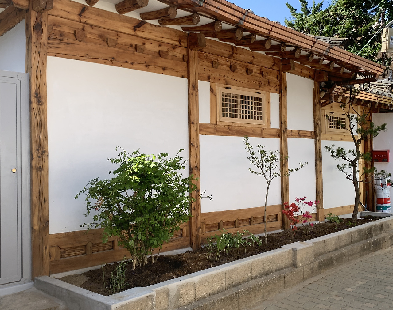 골목엔 소나무와 화살나무, 영산홍, 낙엽 수국, 둥굴레 등을 심었고, 마당엔 수양매화와 목수국, 모란, 미스김 라일락, 치자나무를 심었다.