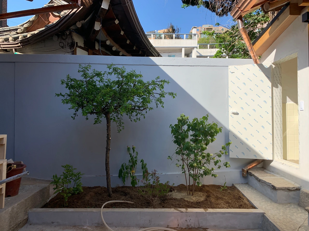 한옥대수선 49일 차_나무를 심고 도색 마감을 하다