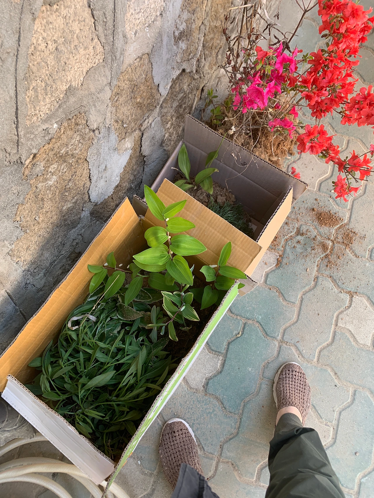 봄 꽃나무를 꼭 심고 싶었고 수양매화를 심어야겠다고 마음먹고 페이스북 지인(온라인 꽃 배송 서비스 로즈 온리와 절화 도매업체 현진 원예 이재호 사장님)을 통해 농장을 소개받았다. 이렇게 알게 된 송추에서 농장을 하시는 홍세한 사장님은 한 차례 집엘 다녀 가셨고 이후엔 정돈된 화단의 모습과 크기를 메시지로 달라고 하셨다.