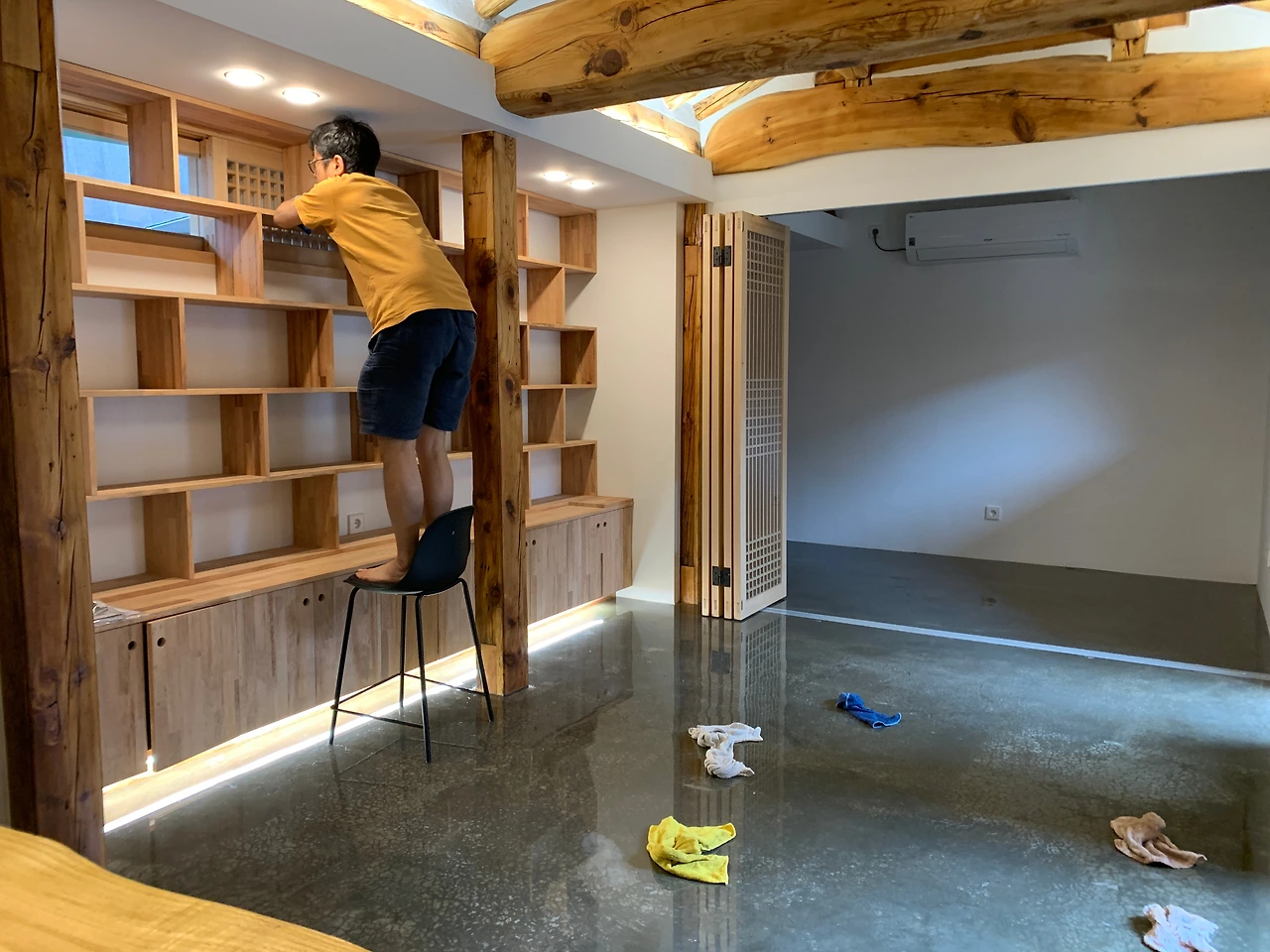 첫 번째 손님은 류왕보 대표였다. 체격이 좋으신 류 대표님께서 두루마리 휴지를 들고 오셨고 오셔선 마루는 스페인 느낌도 난다며 칭찬하셨다. 특히 게스트룸에 대한 몇 가지 아이디어도 주셨다.