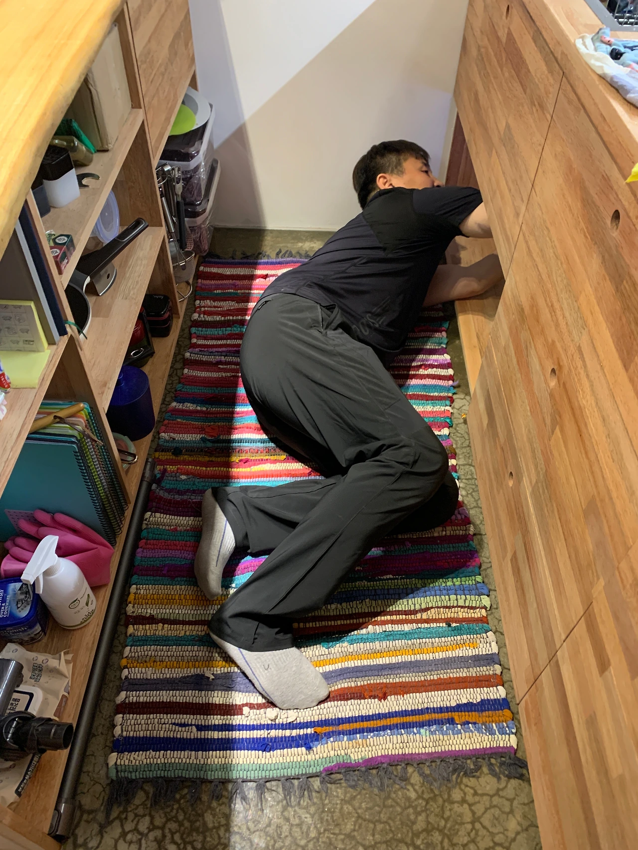 이밖에도 목수님은 이러저러하게 불편한 점을 해결해 주셨다. 주방 싱크대 누수를 점검하면서는 “목수란 직업이 참 좋아요. 누워서 일할 수도 있고”라며 농담을 던지셨다.
