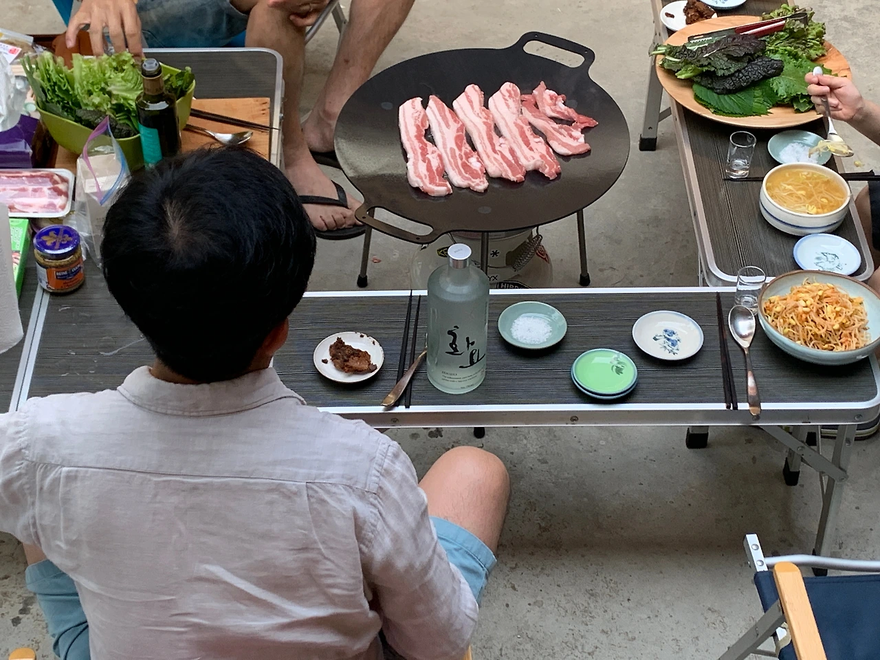 며칠 전 친하게 지내는 동생 가족이 캠핑 장비를 들고 집에 왔다. 우리는 마당에 불판을 펴고 고기를 구웠다. 아늑하고 편리한 게 왠만한 캠핑장보다 낫다는 생각이 들었다.