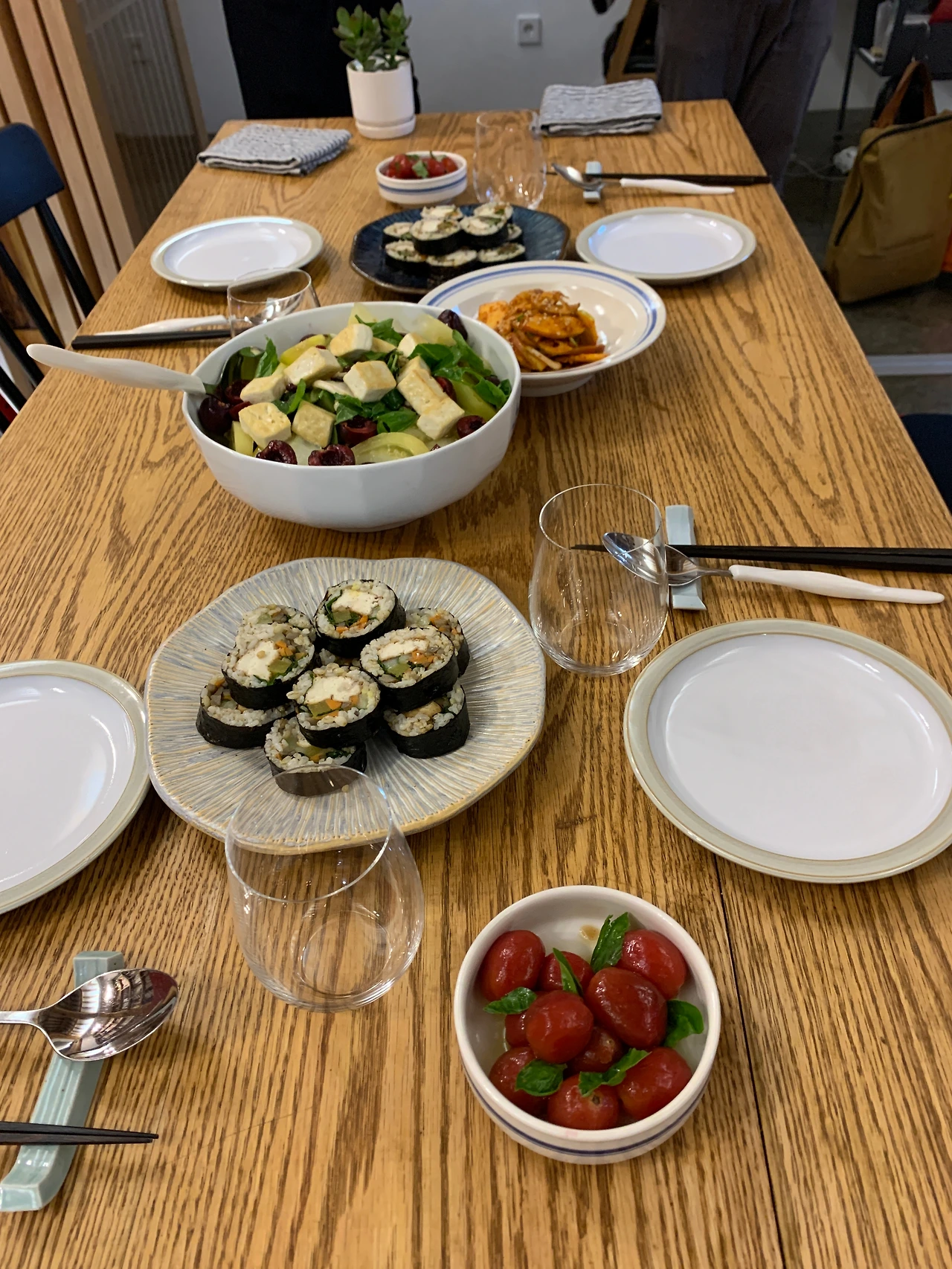 각자 비건 음식을 한가지씩 가져왔고 나는 두 가지 음식을 소개했다.