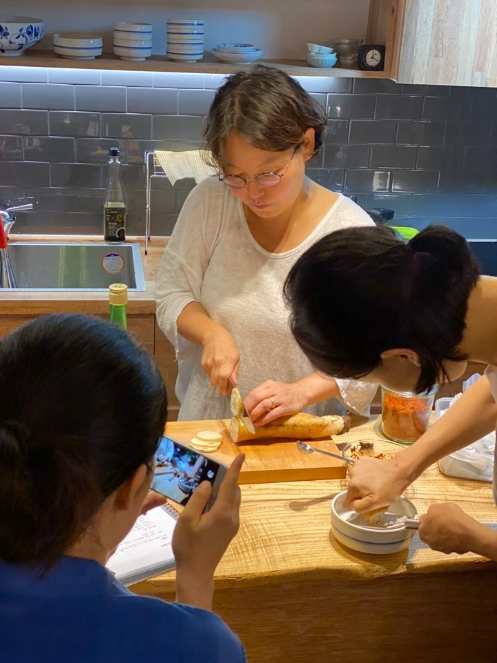 내가 소개한 음식은 율무팥샐러드와 연근사과김치였고 시소당은 올리브오일에 마리네이드한 토마토, 파란대문집은 두부김밥을 들고왔다. 모두 맛이 정말 좋았다.