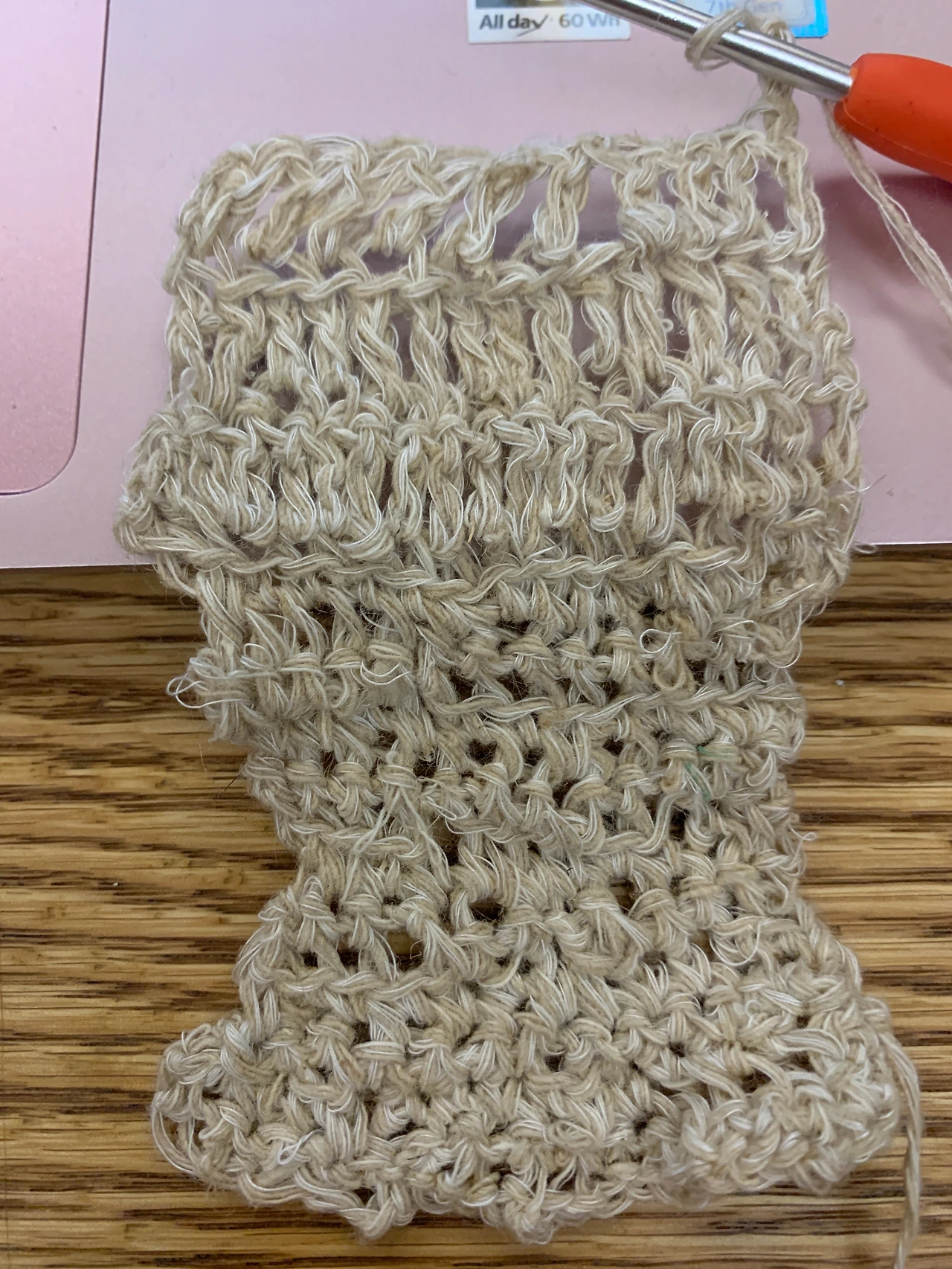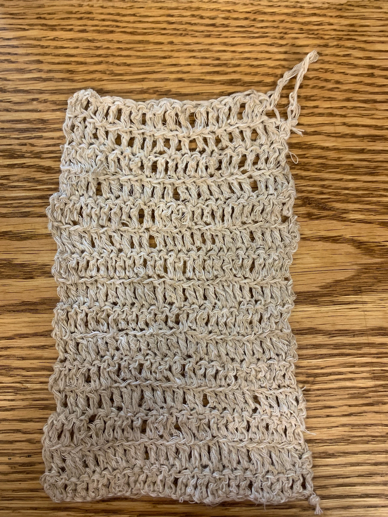 못생겼지만 아무튼 나의 코바늘 뜨기 작품 1호 삼베 수세미. (나름 고리도 만듦)