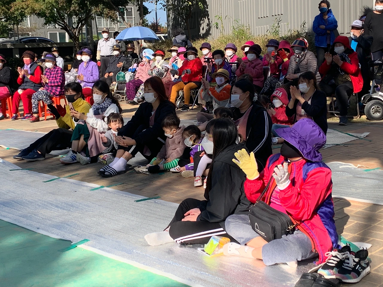 다양한 소리와 연주, 진도씻김굿으로 구성된 우리 공연은 특히 노인분들이 좋아했다. 공연을 보시며 흥겹게 박수를 치시고 어깨를 들썩인다. 진도씻김굿이 진행되면 관객분 중엔 호주머니에서 지폐를 꺼내 지무의 고깔에 끼워주시는 분도 계신다. 감동했다는 표시다.
