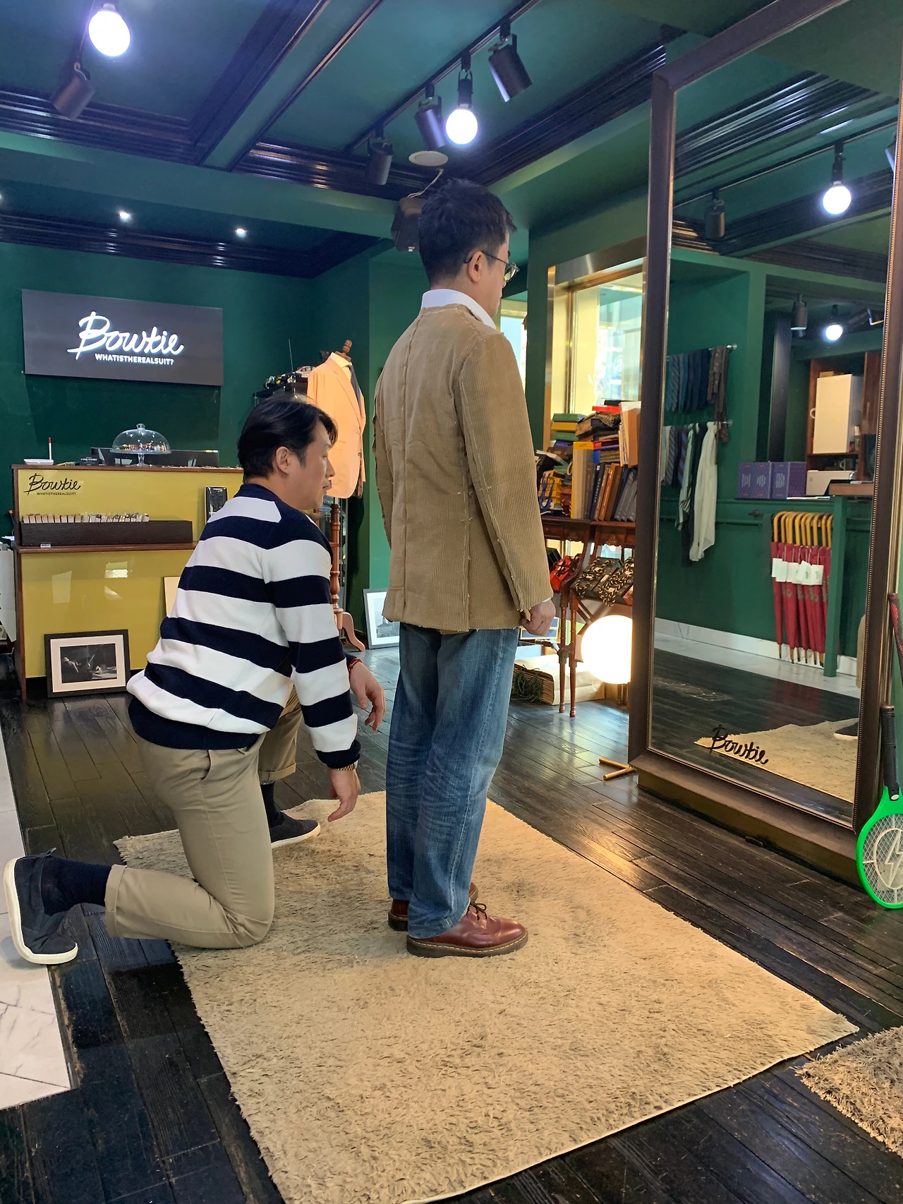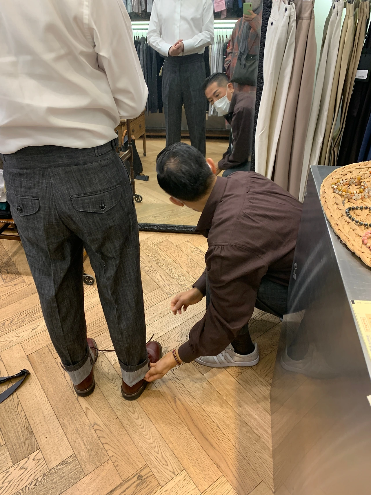 이형우 대표께선 섬세하게 사이즈를 잡아주신 후 적절한 코디법과 바지 길이, 바지 수선법을 다시 일러주셨다.