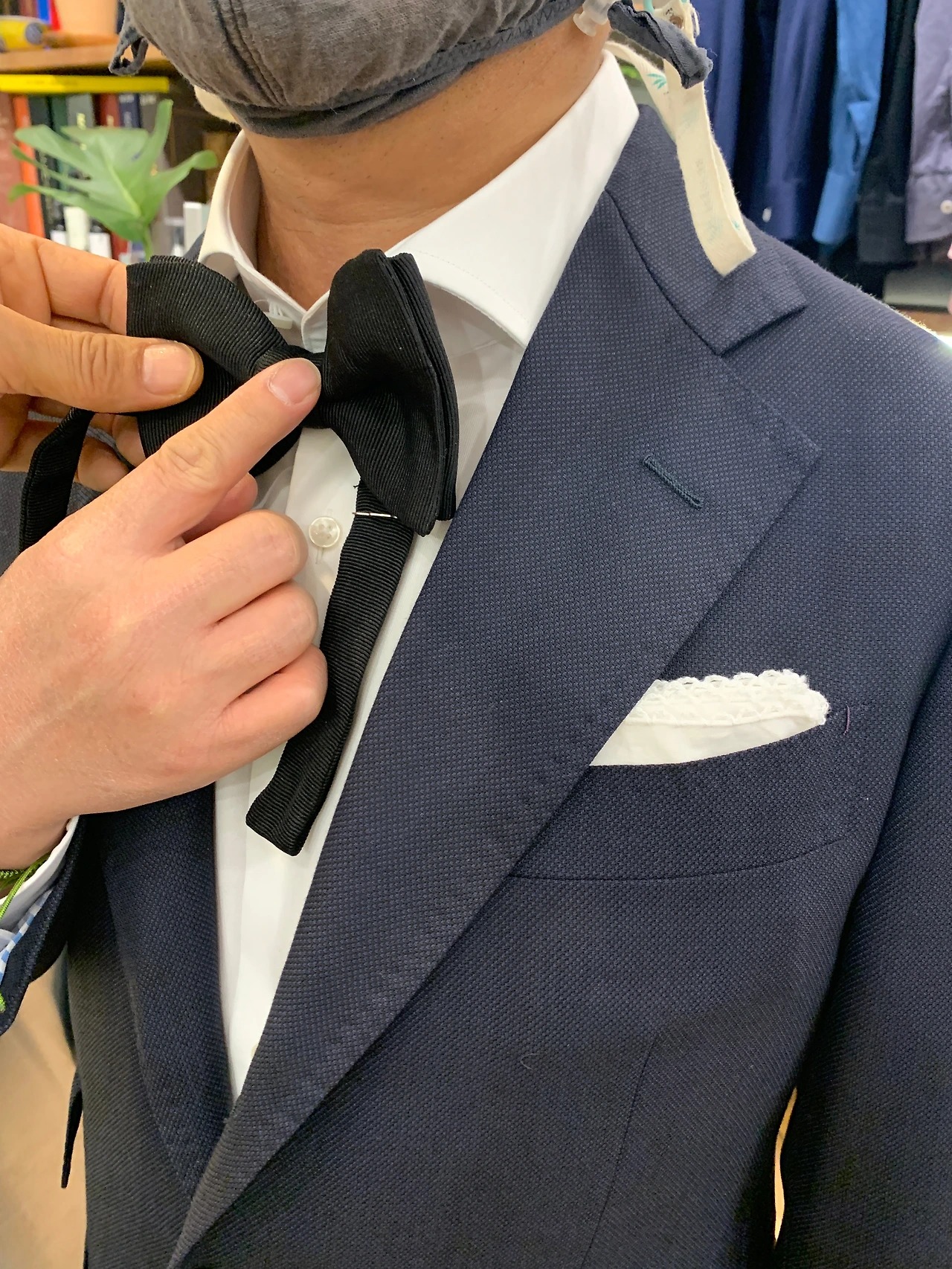 직업과 스타일의 특성상 슈트를 입지 않는 남편에게 이 대표가 처음 권한 것은 어디에나 무난한 짙은 네이비 색상의 블레이저와 와이셔츠였다. 꼼꼼하게 몸을 재고 한 차례 가봉을 거쳐 나온 블레이져는 내가 입고 싶을 정도로 이뻤다. (아래 사진 중 보타이를 매치한 블레이져)