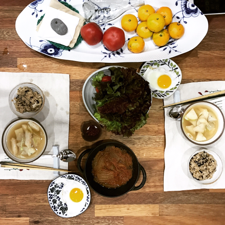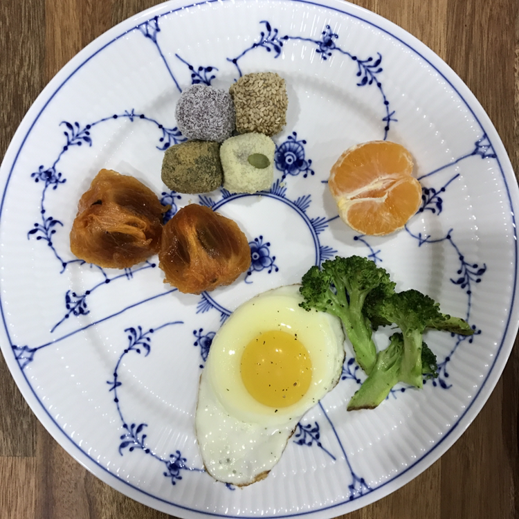 계란 후라이를 하면 팬 한쪽엔 브로콜리를 볶았다. 차가운 귤에도 살짝 열을 가했다. 겨울 아침 과일 먹기는 곤욕이다. 그래도 잘익은 감은 맛있다. 세일한다고 지른 디너접시에 아침을 차렸다. 기분이 좋다.