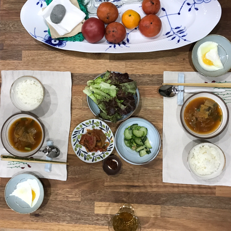 묵은지찜 오뎅국 톳을 넣어지은밥과 계란 후라이. 행복한 아침이다. 오뎅국 육수는 황태머리를 넣어 우렸다.