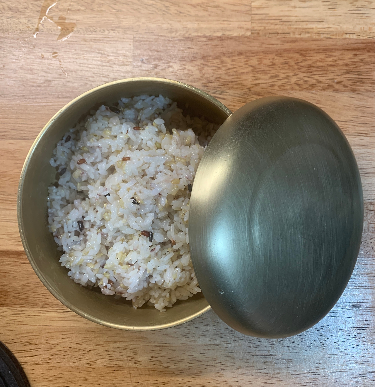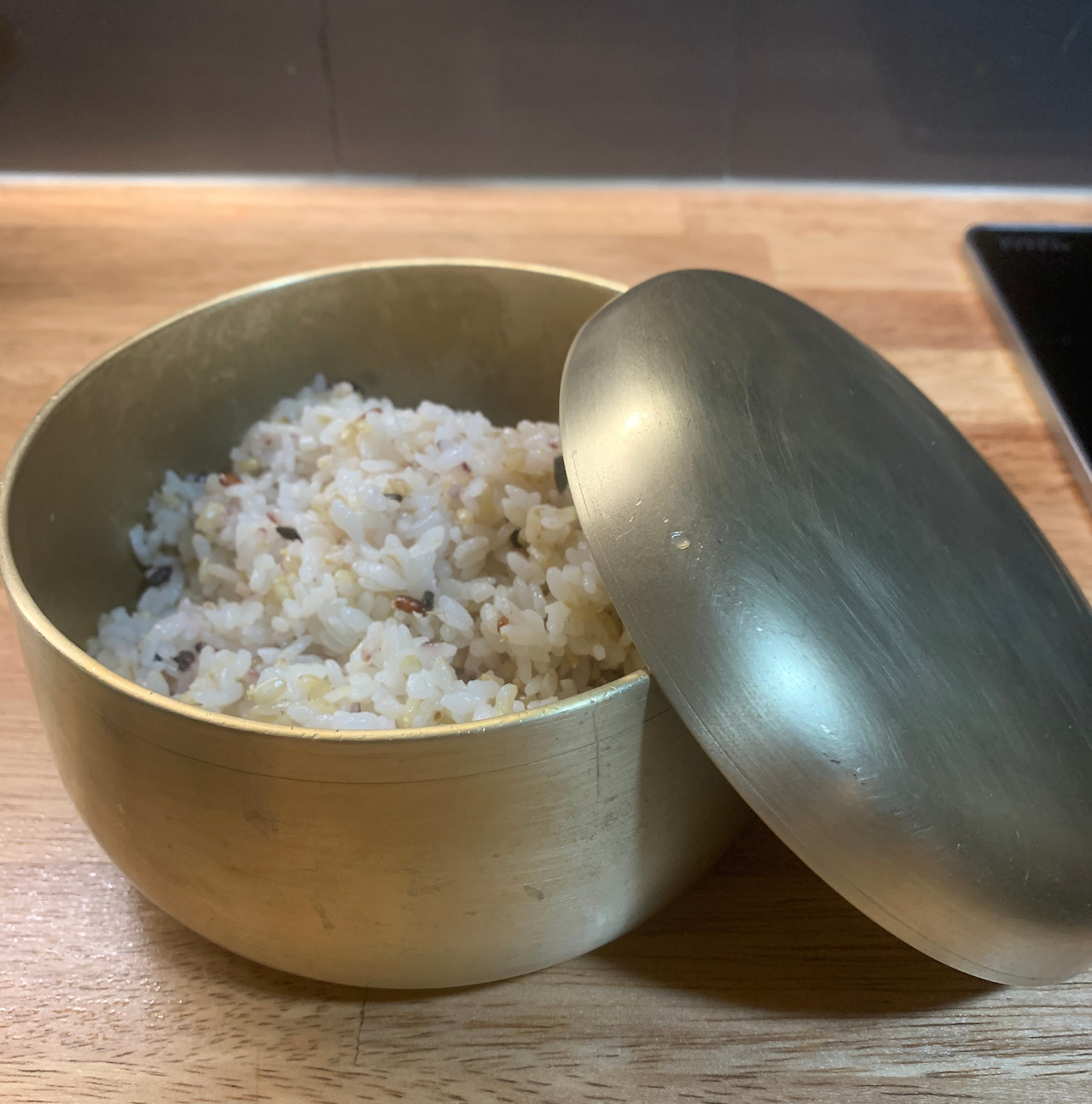 전기밥솥이 없다. 매 끼니 밥을 새로 지어 먹는다. 간혹 두 번 먹을 밥을 하기도 한다. 그럴 땐 이 유기그릇에 남은 밥을 담아 둔다. 데울 땐 그릇 그대로 찜솥에 넣고 데운다.