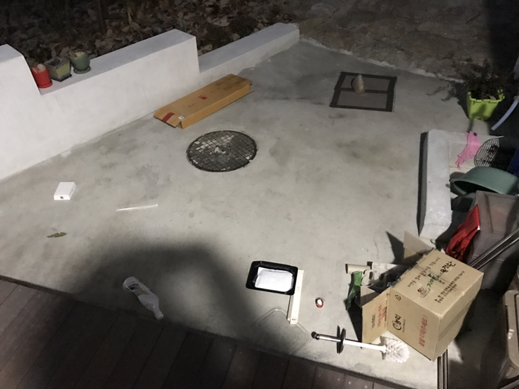그런데 남편이 생선회 포장용기를 마당에 내놓았네요.