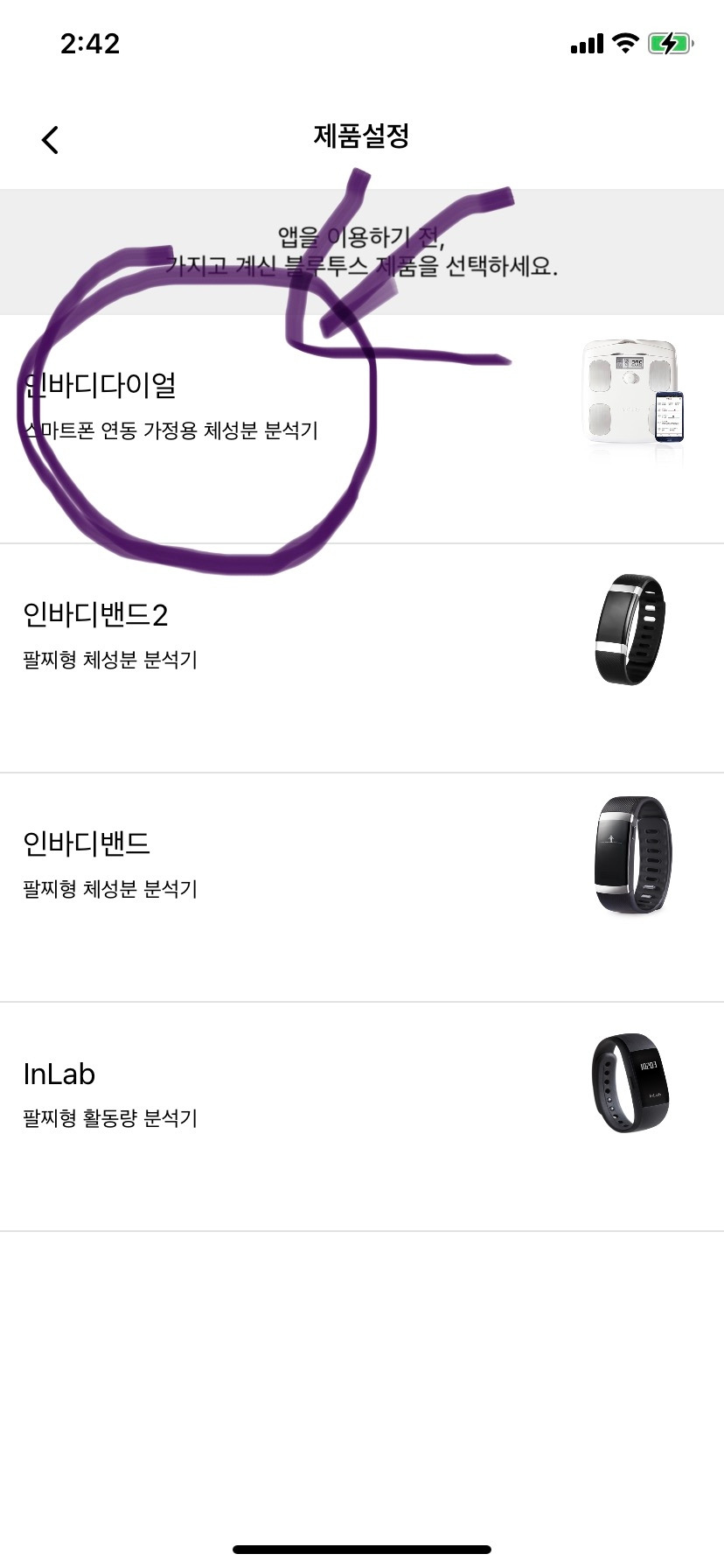 5> 인바디 다이얼을 선택해 제품을 등록한다.