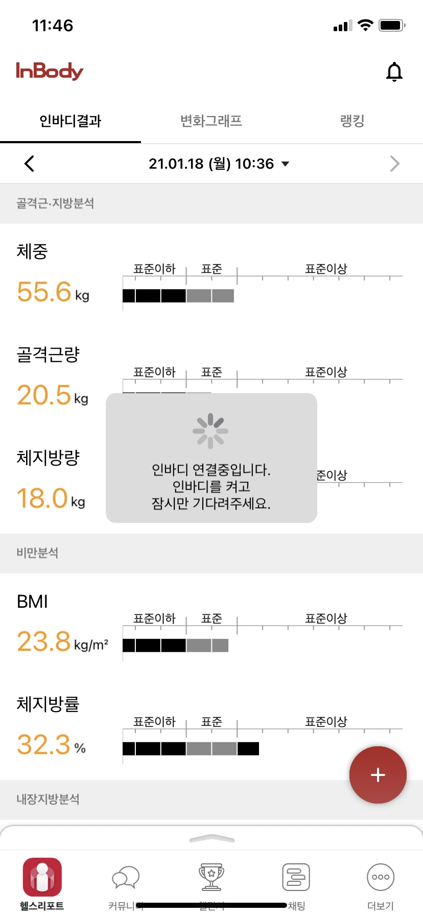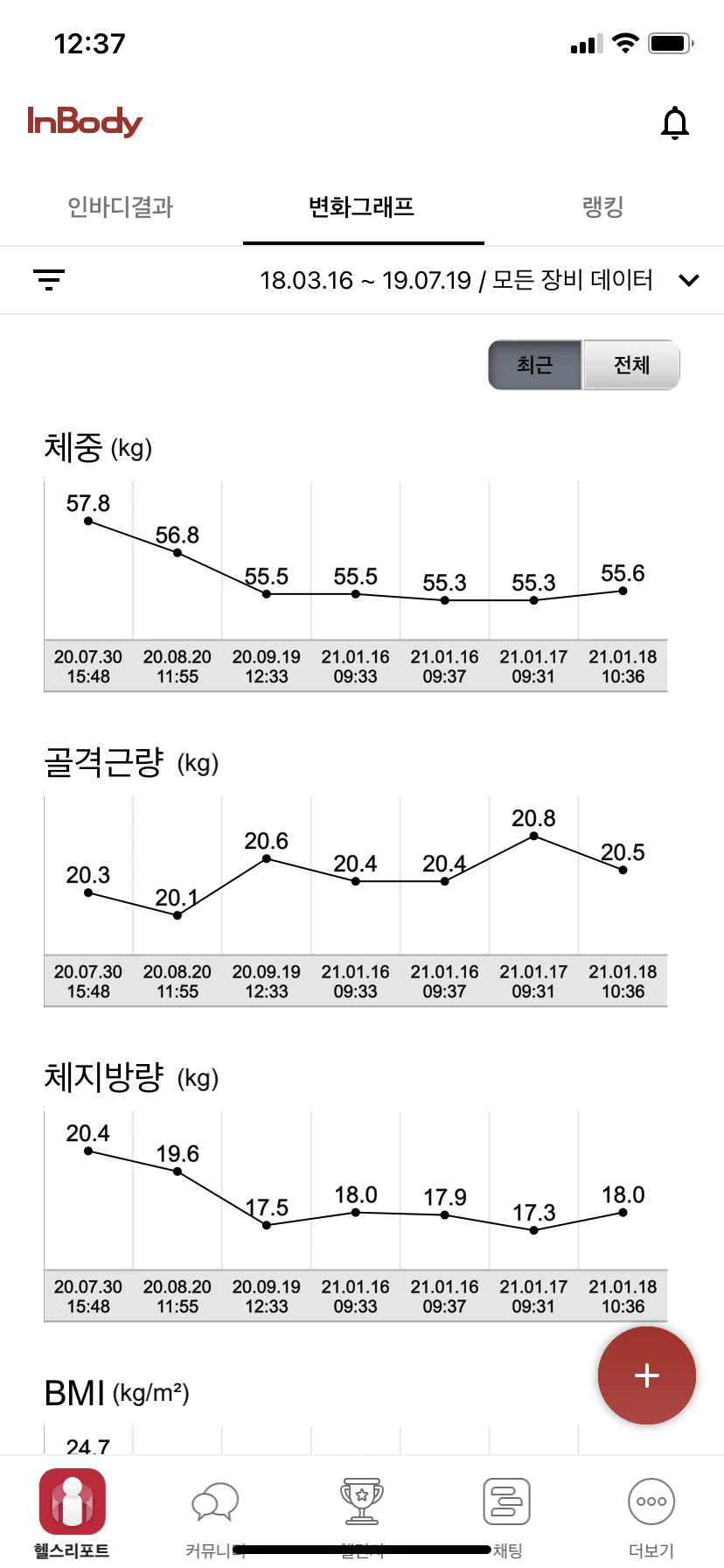 인바디 앱과 연동해 몸의 변화를 그래프로 확인