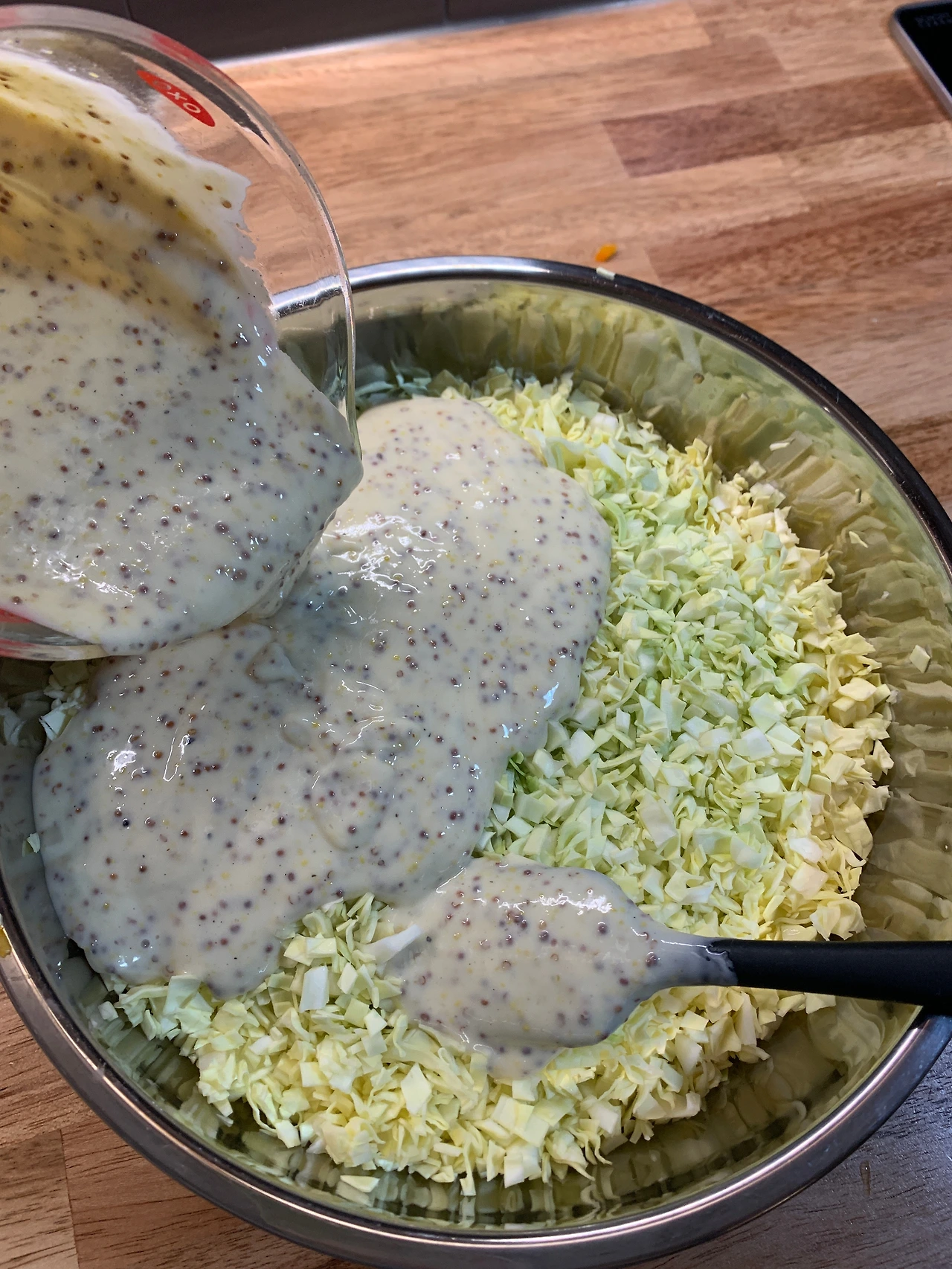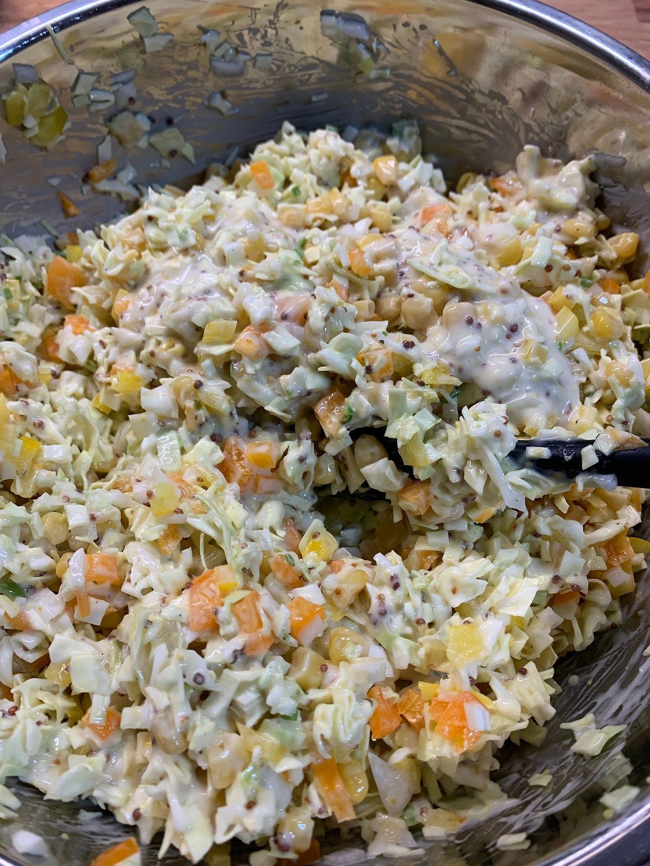 **캔 옥수수 취향껏(캔 옥수수를 추가하면 마요네즈, 홀그레인 머스타드, 설탕, 식초의 양을 조금 늘린다)