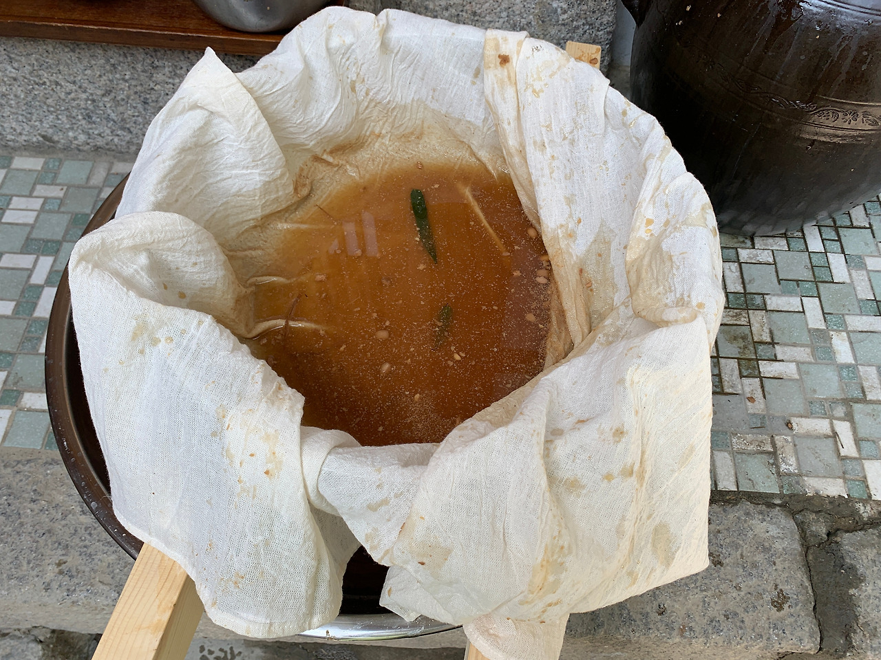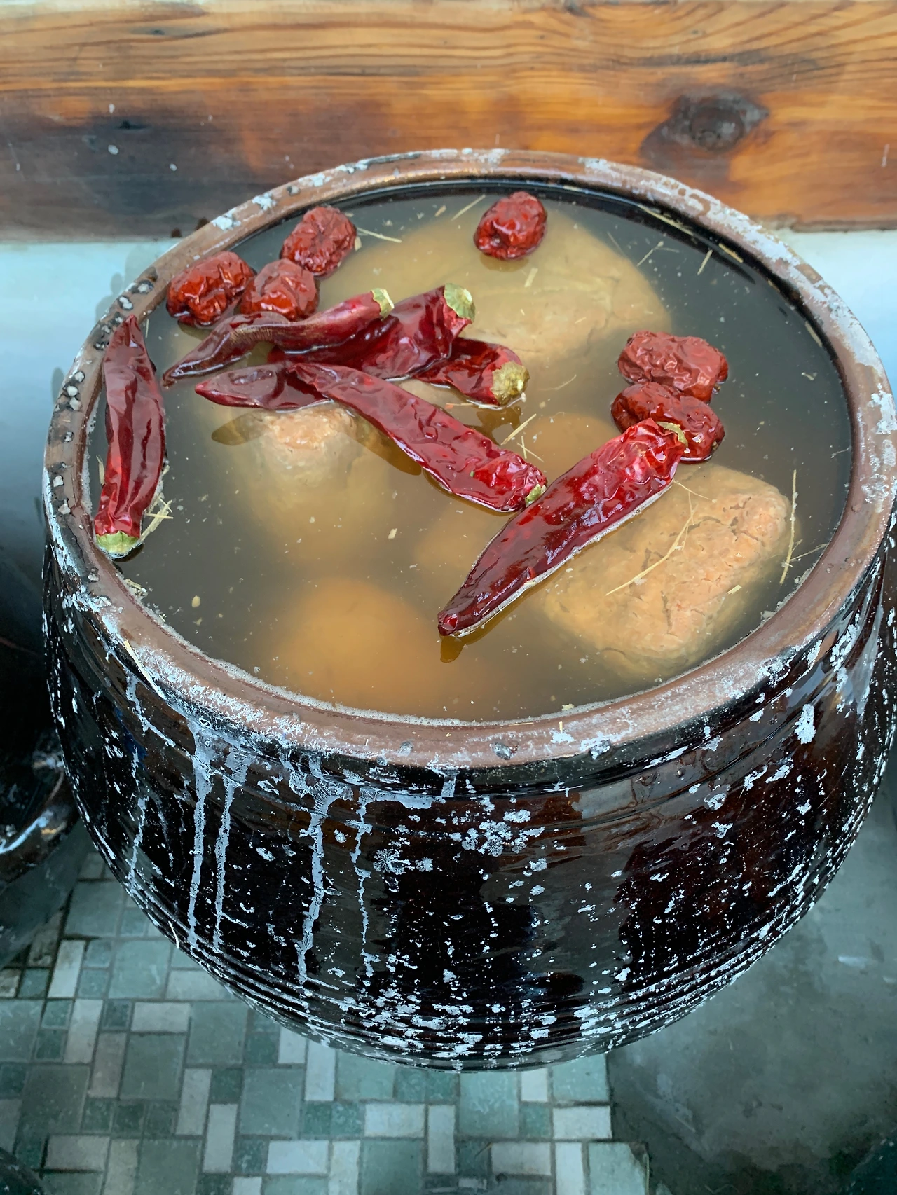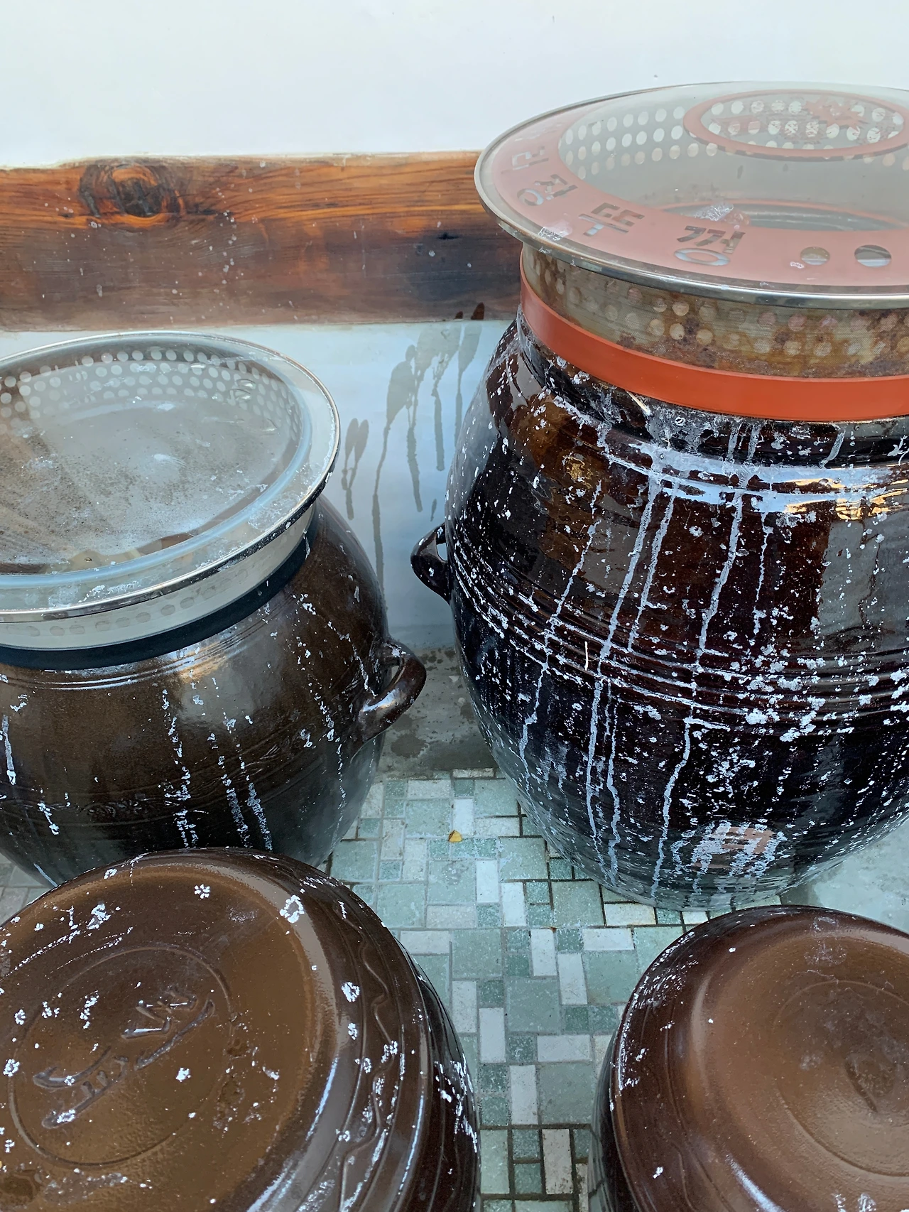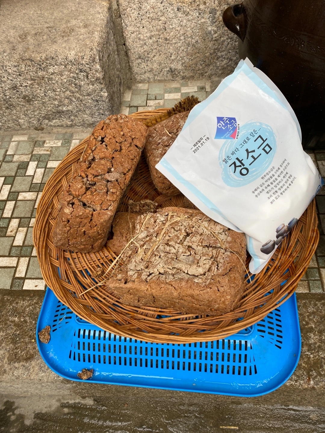 소금물이 튀고 넘치며 하얗게 되어 지저분하지만 오늘은 춥고 피곤해 내일 정리할래요. 오늘 담근 당은 두 달쯤 후에 장가르기 과정을 거쳐 간장과 된장으로 분리됩니다.